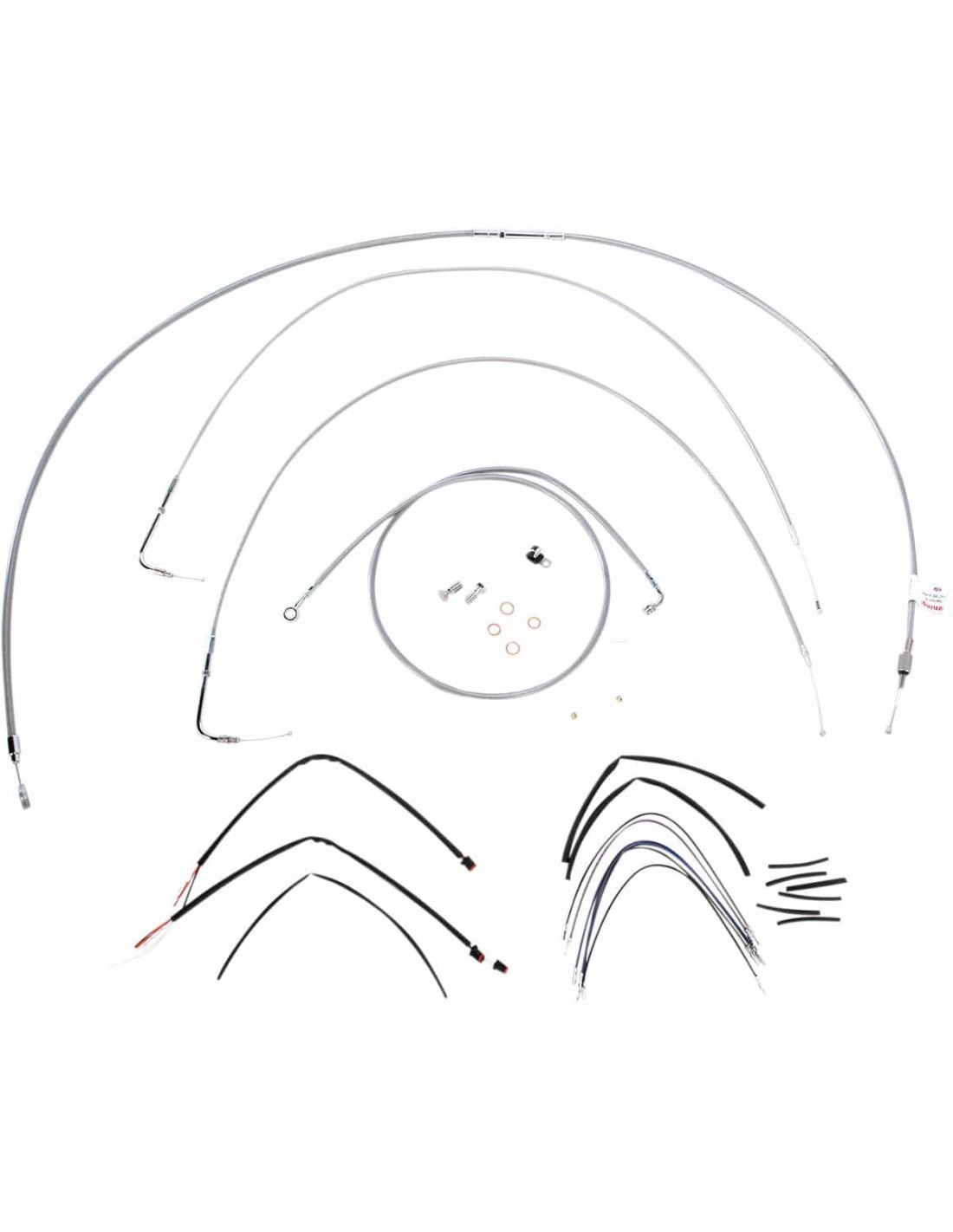 Burly BrandKit tubo freno/cavo manubrio intrecciato in acciaio inossidabile completoKit di installazione completo per Burly Ape Hanger I kit includono tubo freno prolungato, cavo/tubo frizione prolungato, cavi di comando/chiusura gas prolungati come richiesto e tutto il cablaggio necessario I tubi freno presentano un rivestimento interno in PTFE e una treccia esterna in acciaio inossidabile resistente I kit Dresser riutilizzano il cablaggio Ride-By-Wire di serie I kit si basano sull'utilizzo di rialzi da 2” con manubri in stile Ape Hanger