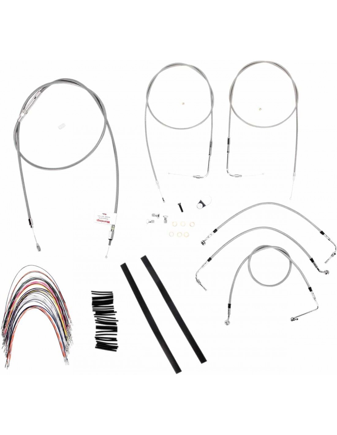 Burly BrandKit tubo freno/cavo manubrio intrecciato in acciaio inossidabile completoKit di installazione completo per Burly Ape Hanger I kit includono tubo freno prolungato, cavo/tubo frizione prolungato, cavi di comando/chiusura gas prolungati come richiesto e tutto il cablaggio necessario I tubi freno presentano un rivestimento interno in PTFE e una treccia esterna in acciaio inossidabile resistente I kit Dresser riutilizzano il cablaggio Ride-By-Wire di serie I kit si basano sull'utilizzo di rialzi da 2” con manubri in stile Ape Hanger