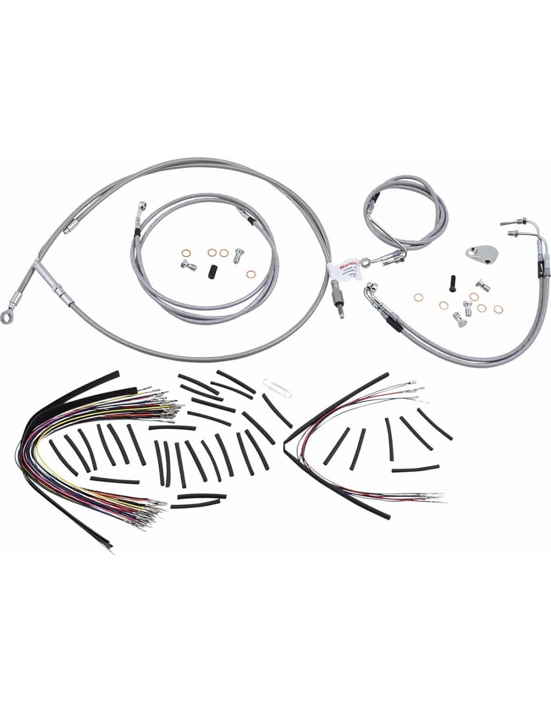 Burly BrandKit tubo freno/cavo manubrio intrecciato in acciaio inossidabile completoKit di installazione completo per Burly Ape Hanger I kit includono tubo freno prolungato, cavo/tubo frizione prolungato, cavi di comando/chiusura gas prolungati come richiesto e tutto il cablaggio necessario I tubi freno presentano un rivestimento interno in PTFE e una treccia esterna in acciaio inossidabile resistente I kit Dresser riutilizzano il cablaggio Ride-By-Wire di serie I kit si basano sull'utilizzo di rialzi da 2” con manubri in stile Ape Hanger