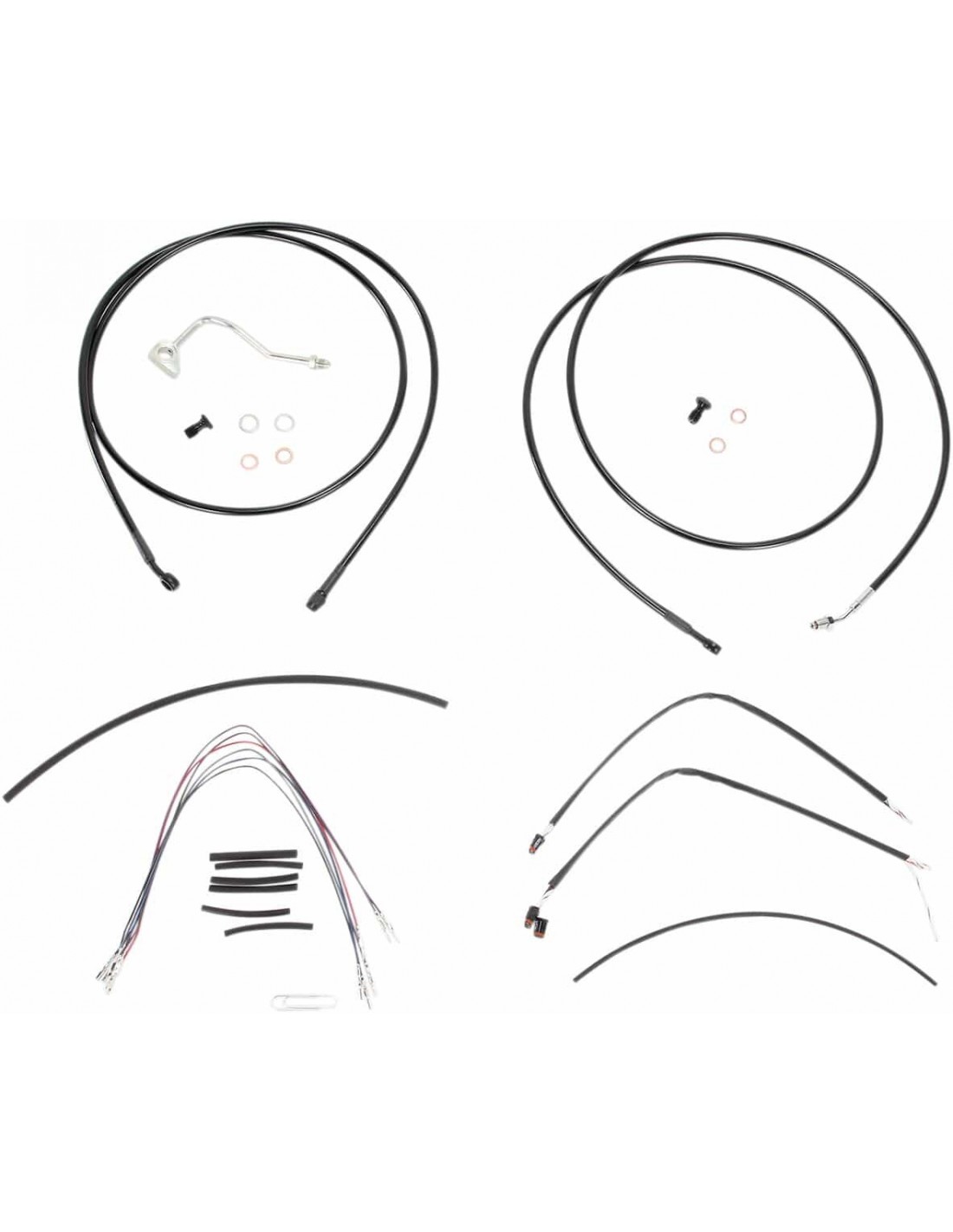 Burly BrandKit tubo/cavo manubrio completo in vinile per manubri Ape HangerKit di installazione completo per Burly Ape HangerI kit includono tubo freno prolungato, cavo/tubo frizione prolungato , cavi comando gas di andata/ritorno prolungati come richiesto e tutto il cablaggio necessarioI tubi freno, se inclusi, presentano un rivestimento interno in PTFE e una treccia esterna in acciaio inossidabile resistenteI kit Dresser riutilizzano il cablaggio Ride-By-Wire di serieI kit si basano sull'utilizzo di rialzi da 2” con manubri in stile Ape HangerInclude tubo freno a doppio disco esteso in treccia metallica (salvo diversamente indicato), cavo/tubo frizione estesa e cavi per cablaggio principale, radio e CB