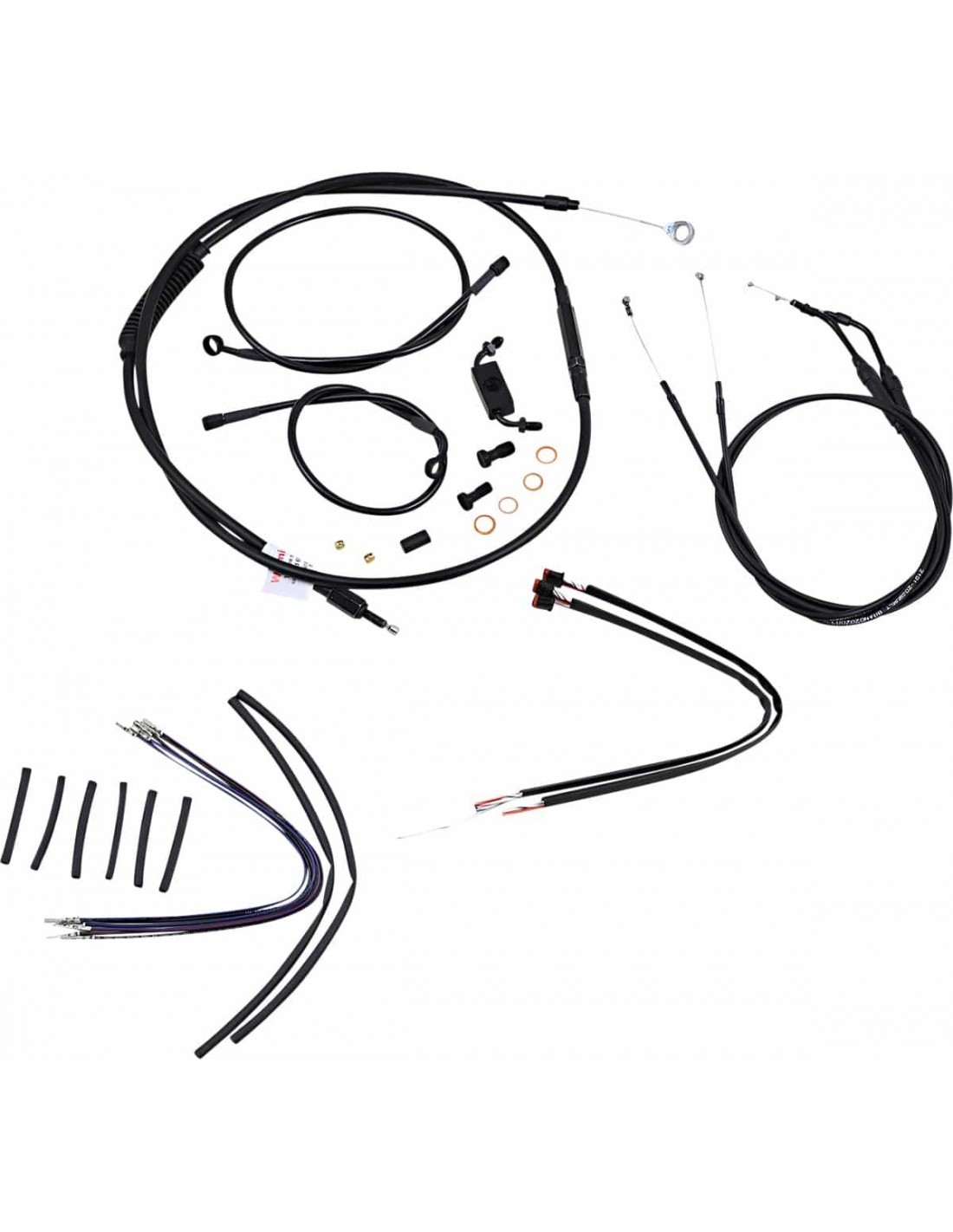 Burly BrandKit tubo/cavo manubrio completo in vinile per manubri Ape HangerKit di installazione completo per Burly Ape Hanger I kit includono tubo freno prolungato, cavo/tubo frizione prolungato , cavi comando gas di andata/ritorno prolungati come richiesto e tutto il cablaggio necessario I tubi freno, se inclusi, presentano un rivestimento interno in PTFE e una treccia esterna in acciaio inossidabile resistente I kit Dresser riutilizzano il cablaggio Ride-By-Wire di serie I kit si basano sull'utilizzo di rialzi da 2” con manubri in stile Ape Hanger Include tubo freno a disco singolo esteso in treccia metallica, cavo frizione estesa, cavi comando gas estesi e tutto il cablaggio necessario