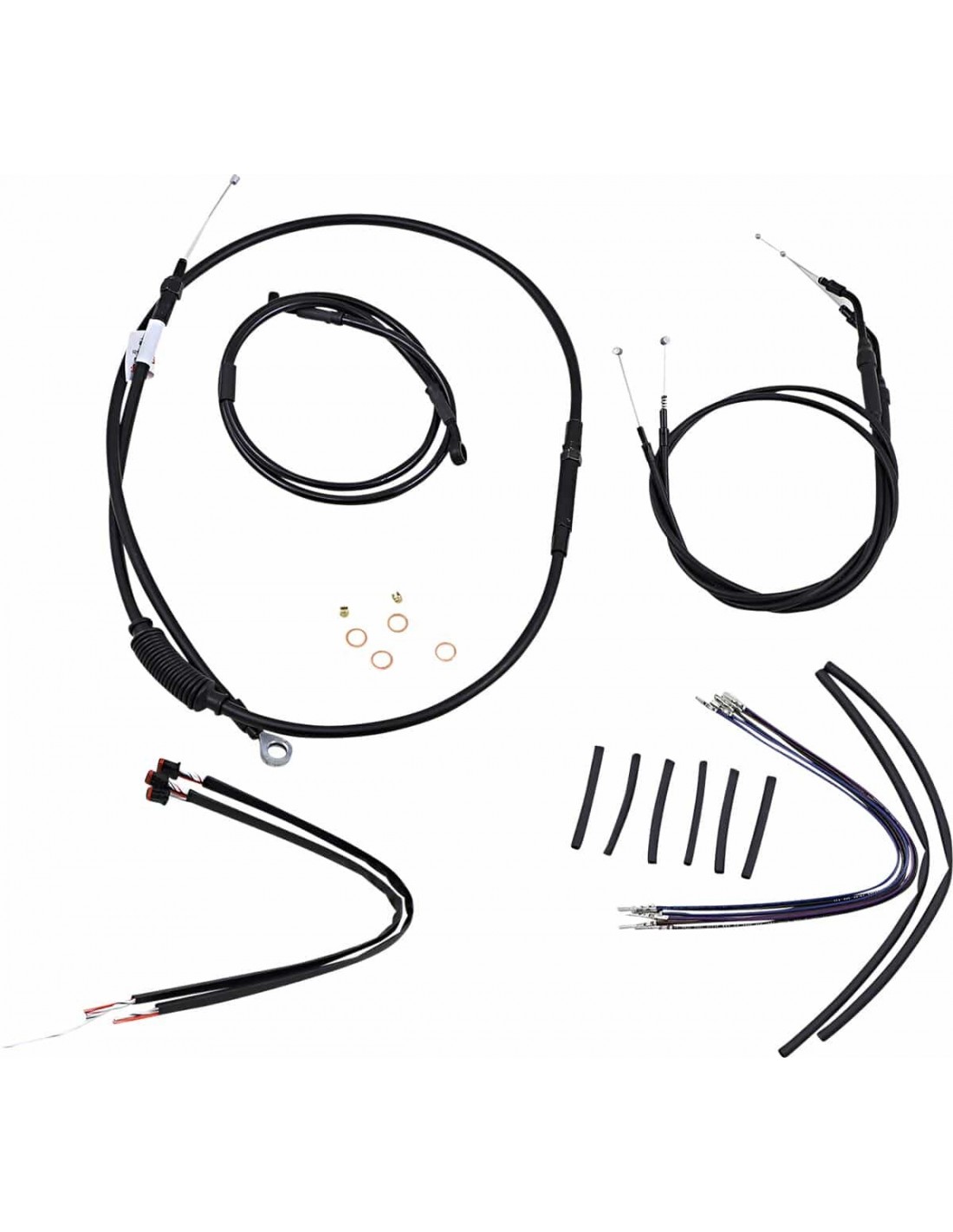 Burly BrandKit cavi manubrio Jail BarKit di installazione cavi/tubi completi per manubri Burly Jail (T-Bar) Il kit include tutto quello che ti serve per installare i il tuo T-Bar I tubi freno presentano un rivestimento interno in PTFE e una treccia esterna in acciaio inossidabile resistente Burly ha ideato ciascuna confezione con l'intento di porre fine ai lavori eseguiti con poca precisione, a tubi spaiati e cavi flosci includendo cavi gas, cavo frizione, tubo freno e cablaggio specifico all'anno di produzione della tua moto; il kit include