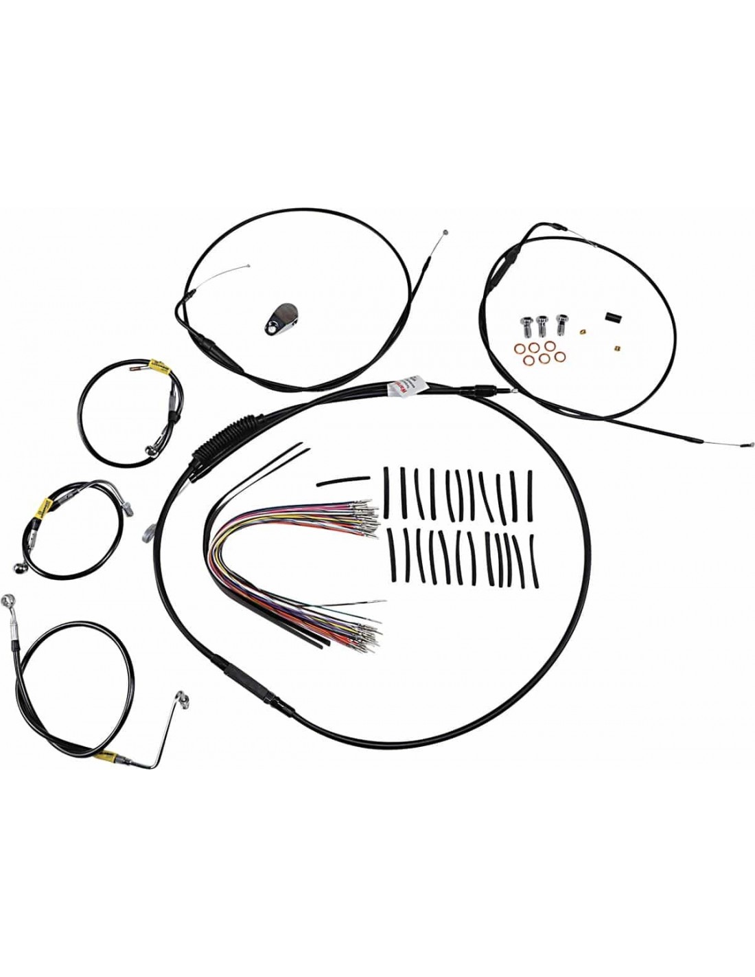 Burly BrandKit di controllo per prime moto touring con manubrio a barra baggerCiascun kit include un tubo freno esteso in modo specifico alla lunghezza del manubrio, un tubo frizione estesa e cablaggio esteso, così come tutti i componenti necessari per installare i manubri sul tuo modello touring Harley-Davidson