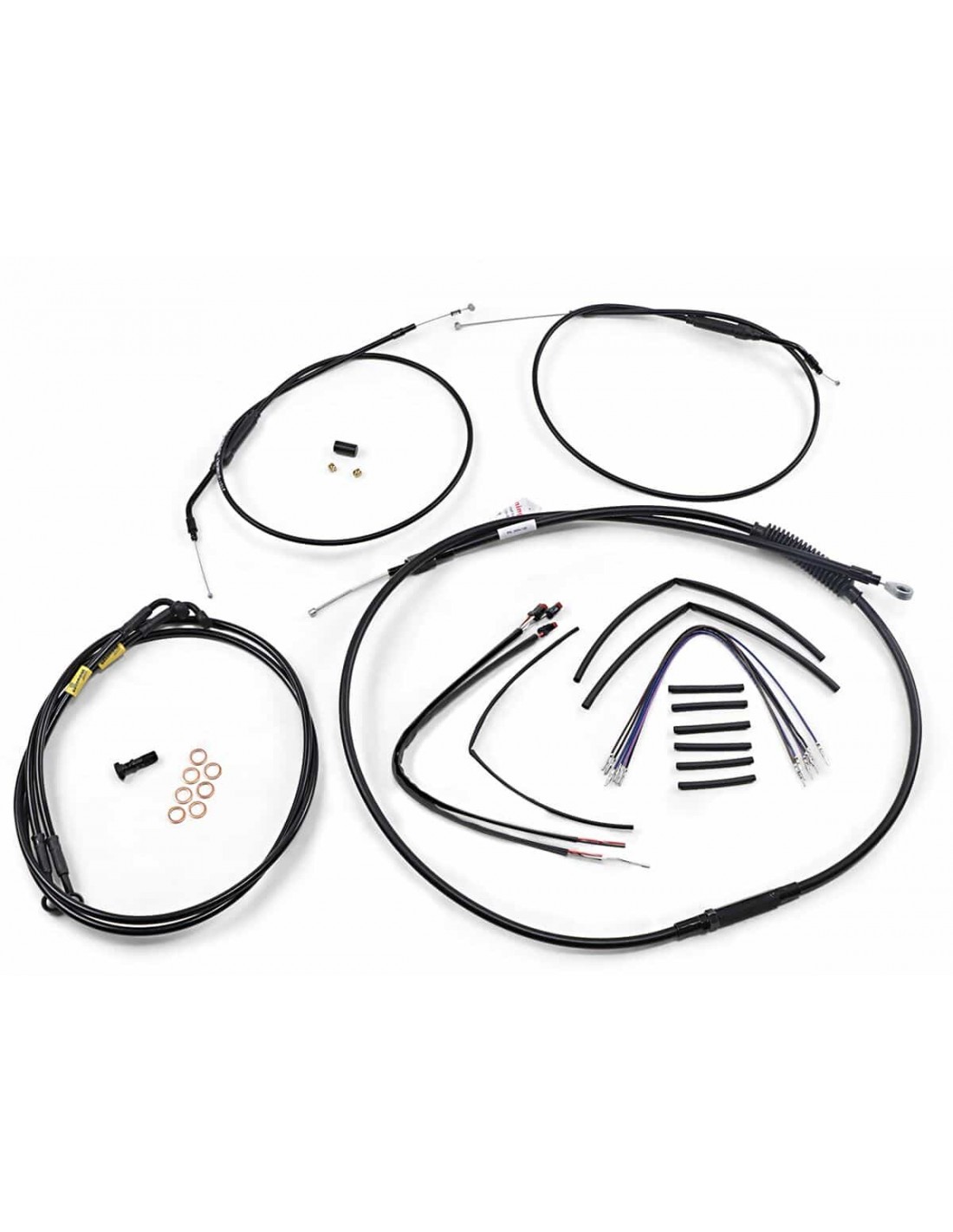 Burly BrandKit cavi manubrio Jail BarKit di installazione cavi/tubi completi per manubri Burly Jail (T-Bar) Il kit include tutto quello che ti serve per installare i il tuo T-Bar I tubi freno presentano un rivestimento interno in PTFE e una treccia esterna in acciaio inossidabile resistente Burly ha ideato ciascuna confezione con l'intento di porre fine ai lavori eseguiti con poca precisione, a tubi spaiati e cavi flosci includendo cavi gas, cavo frizione, tubo freno e cablaggio specifico all'anno di produzione della tua moto; il kit include