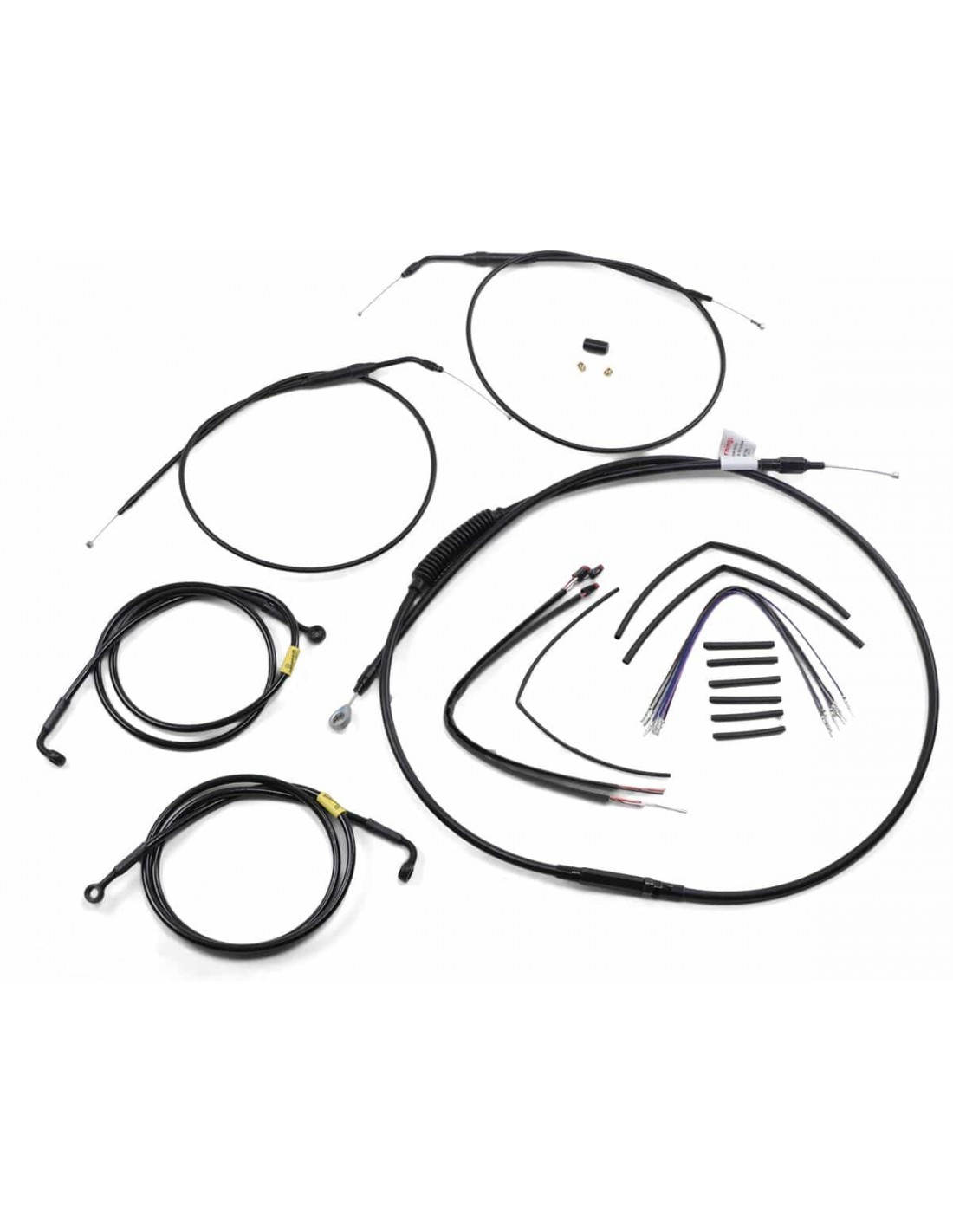 Burly BrandKit tubo/cavo manubrio completo in vinile per manubri Ape HangerKit di installazione completo per Burly Ape Hanger I kit includono tubo freno prolungato, cavo/tubo frizione prolungato , cavi comando gas di andata/ritorno prolungati come richiesto e tutto il cablaggio necessario I tubi freno, se inclusi, presentano un rivestimento interno in PTFE e una treccia esterna in acciaio inossidabile resistente I kit Dresser riutilizzano il cablaggio Ride-By-Wire di serie I kit si basano sull'utilizzo di rialzi da 2” con manubri in stile Ape Hanger
