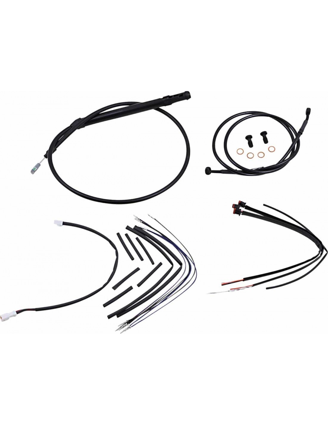 Burly BrandKit cavi manubrio Jail BarKit di installazione cavi/tubi completi per manubri Burly Jail (T-Bar) Il kit include tutto quello che ti serve per installare i il tuo T-Bar I tubi freno presentano un rivestimento interno in PTFE e una treccia esterna in acciaio inossidabile resistente Burly ha ideato ciascuna confezione con l'intento di porre fine ai lavori eseguiti con poca precisione, a tubi spaiati e cavi flosci includendo cavi gas, cavo frizione, tubo freno e cablaggio specifico all'anno di produzione della tua moto; il kit include