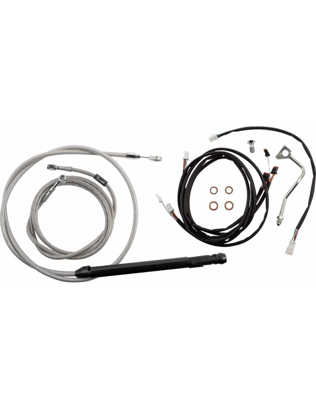 Burly BrandKit di controllo modello TouringInclude tutto il necessario per installare il manubrio: cavo frizione, tubo freno, kit di estensione per cablaggio principale, tubi termoretraibili e amp; kit di estensione per Throttle-By-Wire Destinato all'uso con riser standard da 2". Alcuni modelli con ABS utilizzano tubi freno di serie.