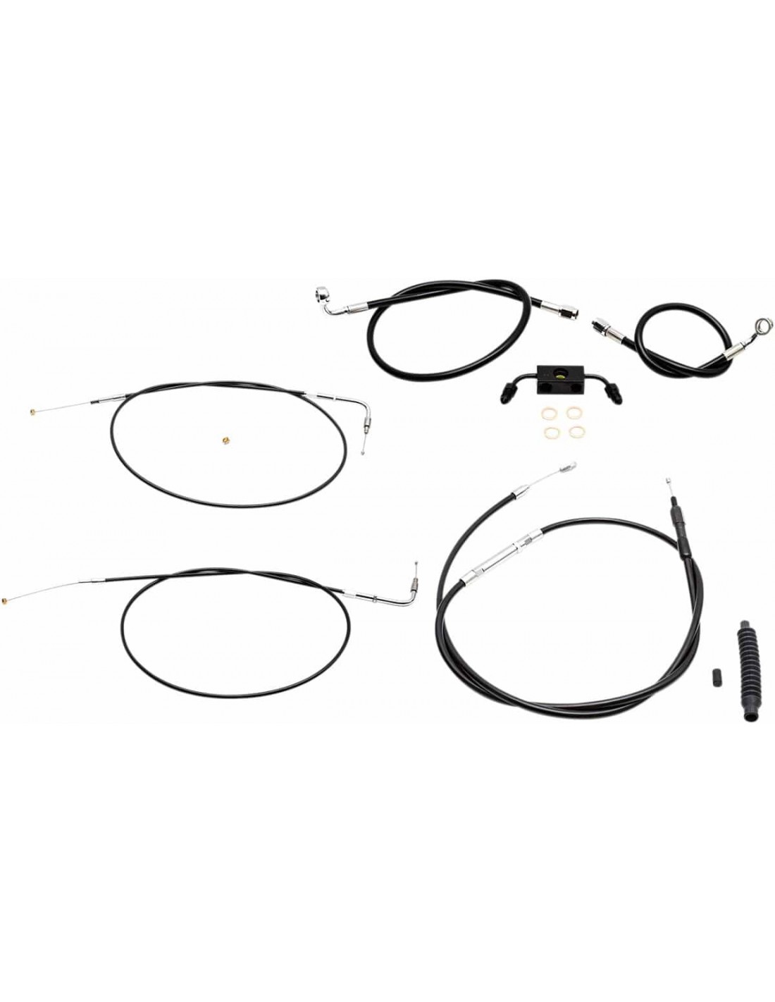 La ChoppersKit tubo freno/cavo manubrio intrecciato standard in vinile neroIl kit standard include tubo frizione, tubi freno, giunto a T cromato per tubo freno, viti banjo, raccordi e rondelle di tenuta in rame Tubi freno/frizione della lunghezza corretta e prolunghe inclusi per completare la sostituzione di un manubrio Made in the USA Prolunghe fili elettrici non inclusi (disponibili separatamente ) Il kit si basa sull'utilizzo di riser da 2” con manubri Ape Hanger