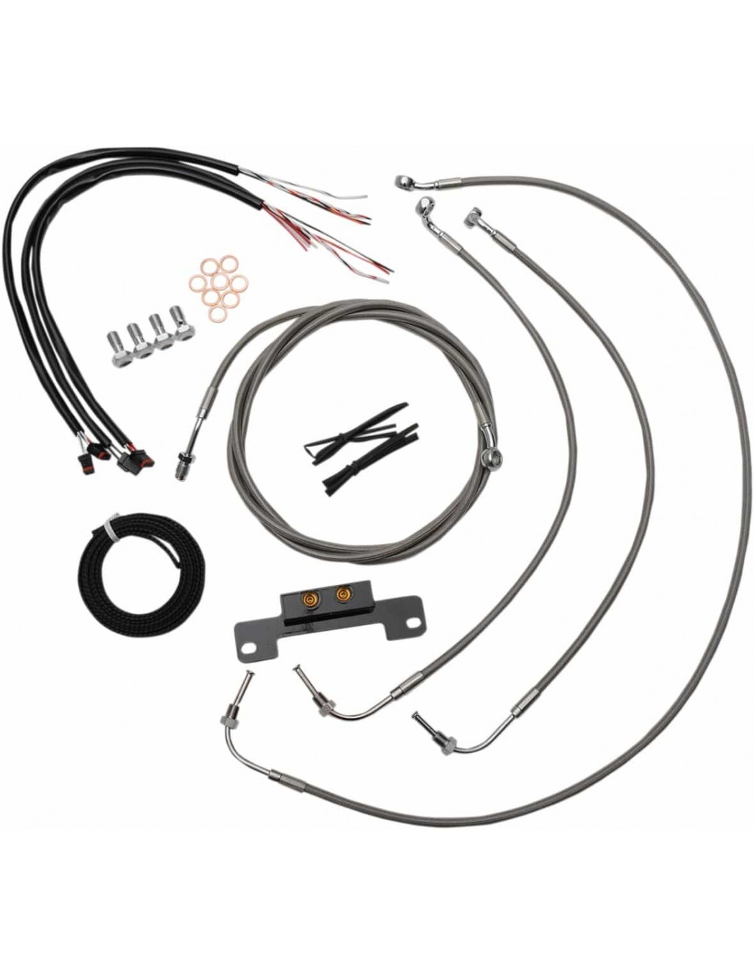 La ChoppersKit tubo freno/cavo manubrio intrecciato in acciaio inossidabile completoCon questo prodotto il “calcolo dei cavi” non rappresenterà più un problema Il kit include cavi della lunghezza corretta , tubi freno e prolunghe cavo per completare la sostituzione di un manubrio Il kit in acciaio inossidabile intrecciato include cavo andata gas, cavo ritorno gas (salvo diversamente indicato), cavo frizione, tubi freno, giunto a T cromato per tubo freno, viti banjo, raccordi e rondelle di tenuta in rame Made in the USA Il kit si basa sull'utilizzo di riser da 2” con manubri Ape Hanger li>