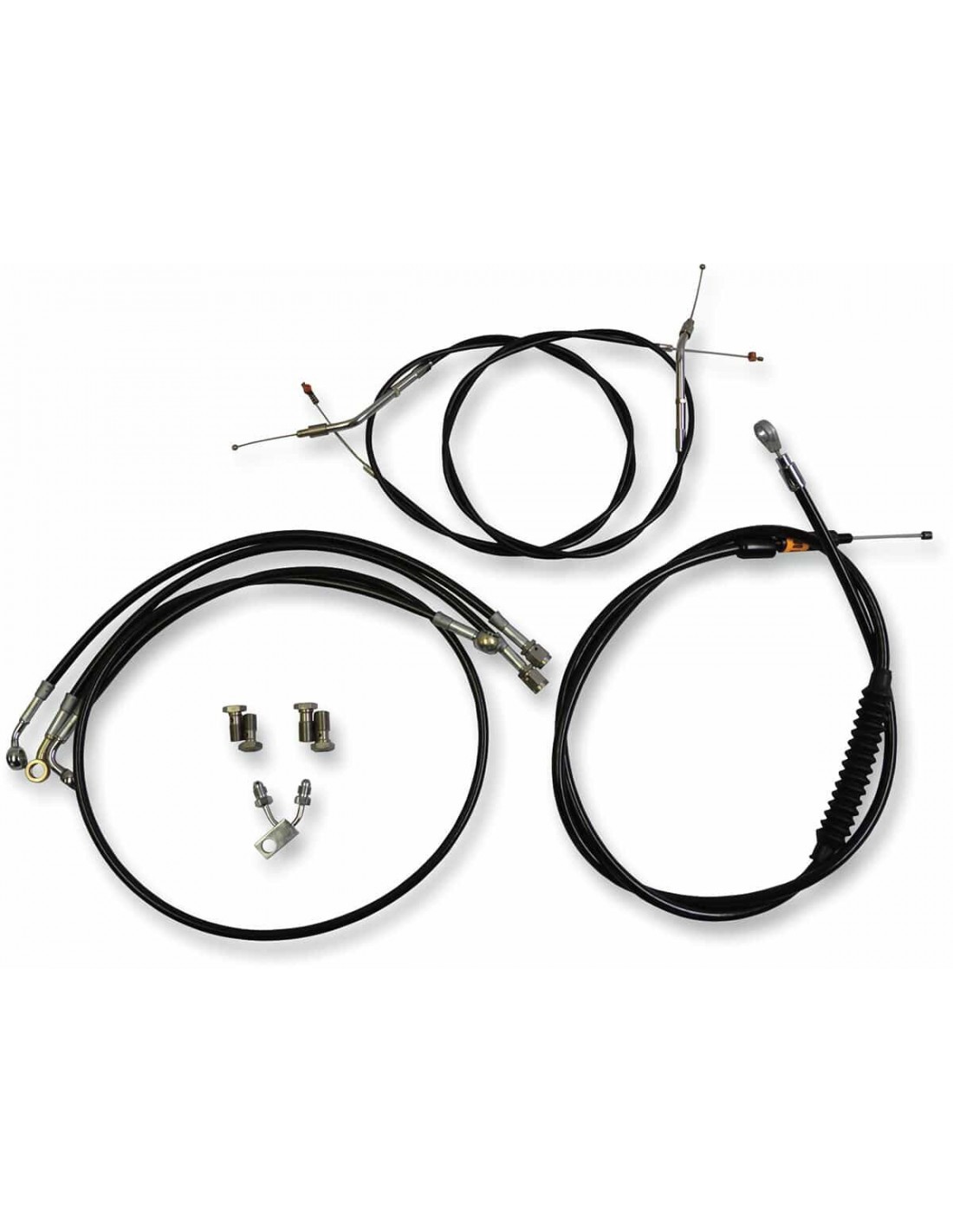 La ChoppersKit tubo freno/cavo manubrio intrecciato standard in vinile neroIl kit standard include tubo frizione, tubi freno, giunto a T cromato per tubo freno, viti banjo, raccordi e rondelle di tenuta in rame Tubi freno/frizione della lunghezza corretta e prolunghe inclusi per completare la sostituzione di un manubrio Made in the USA Prolunghe fili elettrici non inclusi (disponibili separatamente ) Il kit si basa sull'utilizzo di riser da 2” con manubri Ape Hanger
