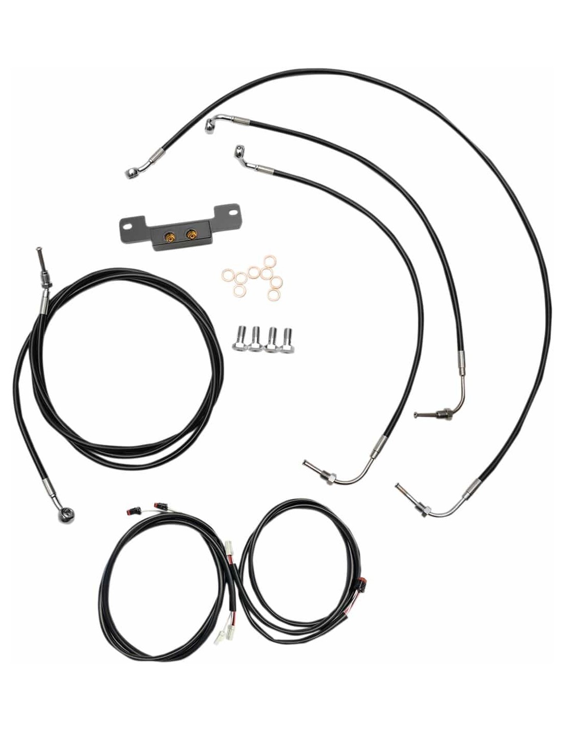 La ChoppersKit cavi completi a installazione rapidaLe prolunghe si inseriscono direttamente nelle prese OEM, senza alcuna necessità di tagliare e saldare fili Tutti i cavi ei fili sono in acciaio inossidabile , indipendentemente dalla finitura Prolunghe cablaggio prefinito per una facile installazione Plug-and-Play incluso