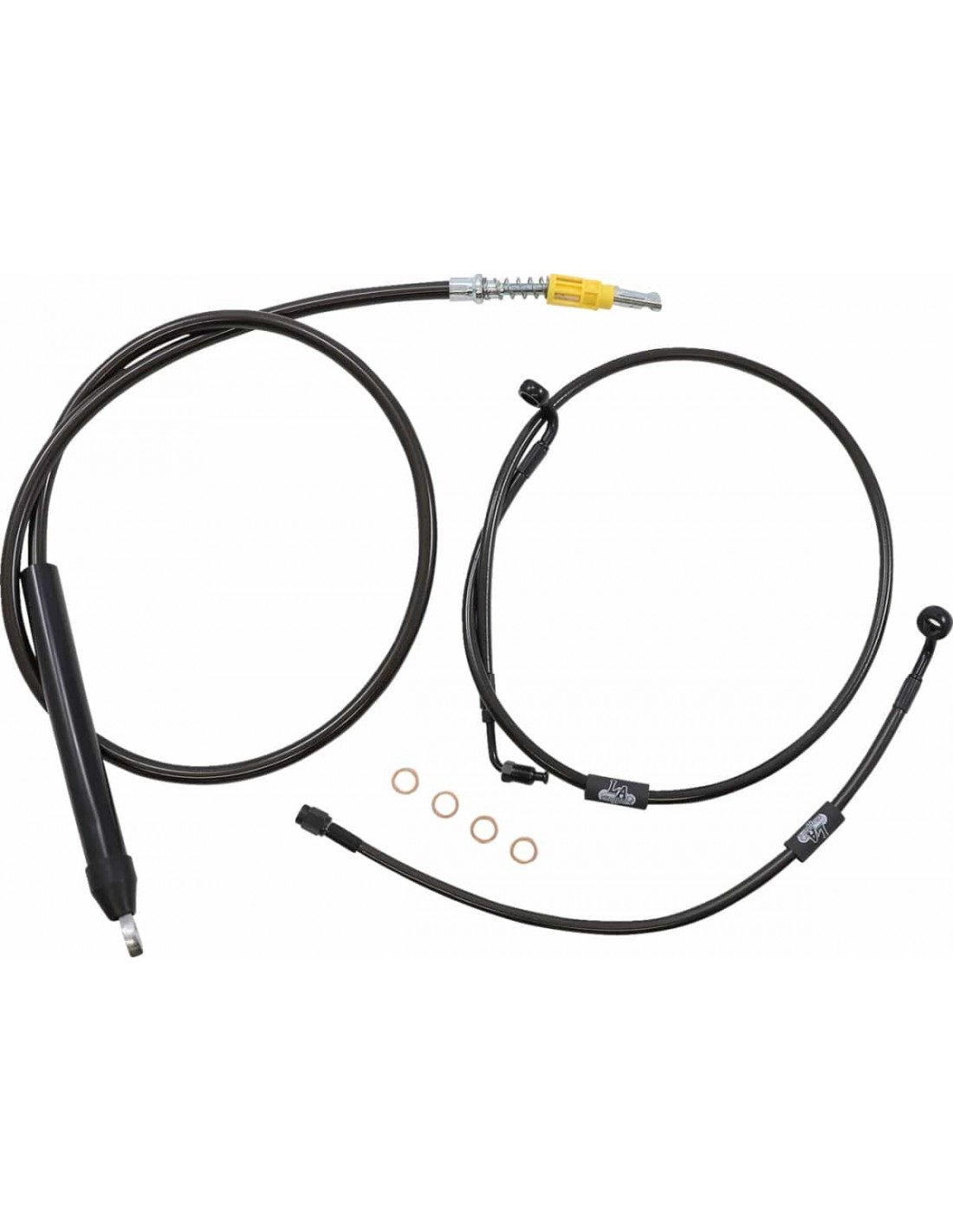 La ChoppersKit tubo freno/cavo manubrio intrecciato standard MidnightI kit standard includono tubo frizione, tubi freno, giunto tubo freno a “T” nero, viti banjo, raccordi e rondelle di tenuta in rame< /li> I kit standard includono i tubi freno/frizione della lunghezza corretta e prolunghe di filo per completare la sostituzione di un manubrio Prolunghe fili elettrici non inclusi (disponibili separatamente) < li>I kit serie Midnight includono il tubo frizione ei tubi freno ricoperti da un rivestimento nero fumé con raccordi di colore neroI tubi presentano un effetto grafite o fibra di carbonio per un look personalizzato, i raccordi neri si si integrano perfettamente con i comandi e le protezioni di colore nero della moto Made in USA Il kit si basa sull'utilizzo di riser da 2” con manubri Ape Hanger