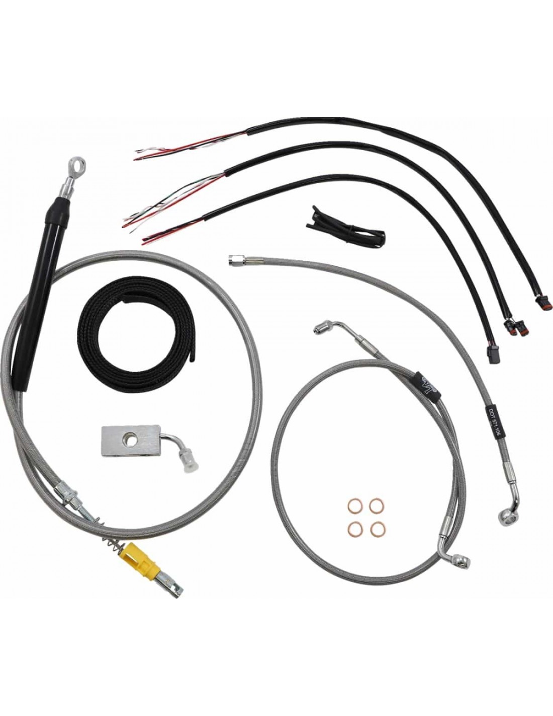 La ChoppersKit tubo freno/cavo manubrio intrecciato in acciaio inossidabile completoCon questo prodotto il “calcolo dei cavi” non rappresenterà più un problema Il kit include cavi della lunghezza corretta , tubi freno e prolunghe cavo per completare la sostituzione di un manubrio Il kit in acciaio inossidabile intrecciato include cavo andata gas, cavo ritorno gas (salvo diversamente indicato), cavo frizione, tubi freno, giunto a T cromato per tubo freno, viti banjo, raccordi e rondelle di tenuta in rame Made in the USA Il kit si basa sull'utilizzo di riser da 2” con manubri Ape Hanger li>