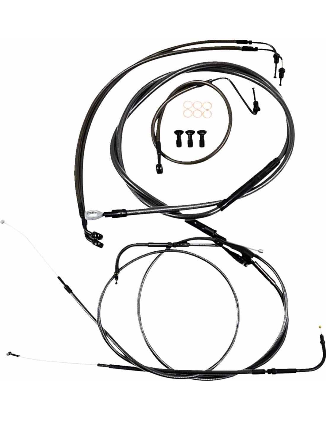 La ChoppersKit tubo freno/cavo manubrio intrecciato standard MidnightI kit standard includono tubo frizione, tubi freno, giunto tubo freno a “T” nero, viti banjo, raccordi e rondelle di tenuta in rame< /li> I kit standard includono i tubi freno/frizione della lunghezza corretta e prolunghe di filo per completare la sostituzione di un manubrio Prolunghe fili elettrici non inclusi (disponibili separatamente) < li>I kit serie Midnight includono il tubo frizione ei tubi freno ricoperti da un rivestimento nero fumé con raccordi di colore neroI tubi presentano un effetto grafite o fibra di carbonio per un look personalizzato, i raccordi neri si si integrano perfettamente con i comandi e le protezioni di colore nero della moto Made in USA Il kit si basa sull'utilizzo di riser da 2” con manubri Ape Hanger