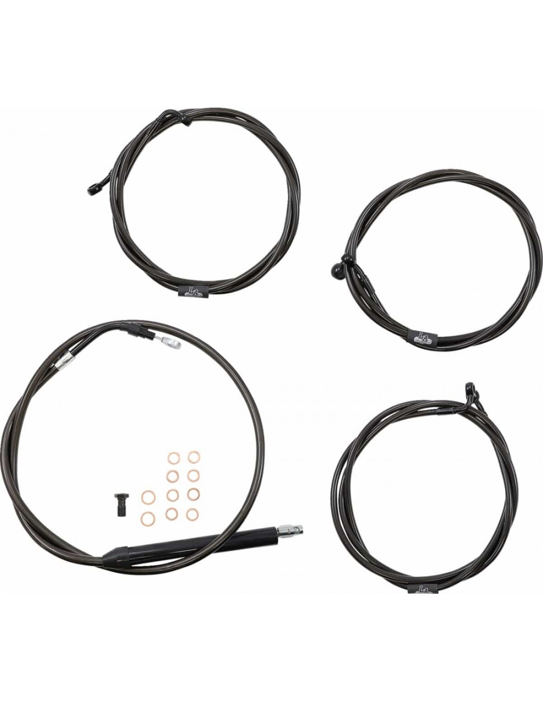 La ChoppersKit tubo freno/cavo manubrio intrecciato standard MidnightI kit standard includono tubo frizione, tubi freno, giunto tubo freno a “T” nero, viti banjo, raccordi e rondelle di tenuta in rame< /li> I kit standard includono i tubi freno/frizione della lunghezza corretta e prolunghe di filo per completare la sostituzione di un manubrio Prolunghe fili elettrici non inclusi (disponibili separatamente) < li>I kit serie Midnight includono il tubo frizione ei tubi freno ricoperti da un rivestimento nero fumé con raccordi di colore neroI tubi presentano un effetto grafite o fibra di carbonio per un look personalizzato, i raccordi neri si si integrano perfettamente con i comandi e le protezioni di colore nero della moto Made in USA Il kit si basa sull'utilizzo di riser da 2” con manubri Ape Hanger
