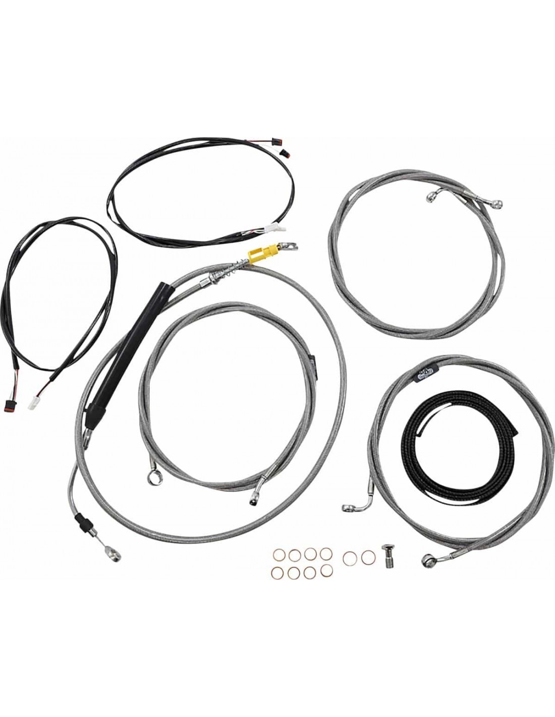 La ChoppersKit cavi completi a installazione rapidaLe prolunghe si inseriscono direttamente nelle prese OEM, senza alcuna necessità di tagliare e saldare fili Tutti i cavi ei fili sono in acciaio inossidabile , indipendentemente dalla finitura