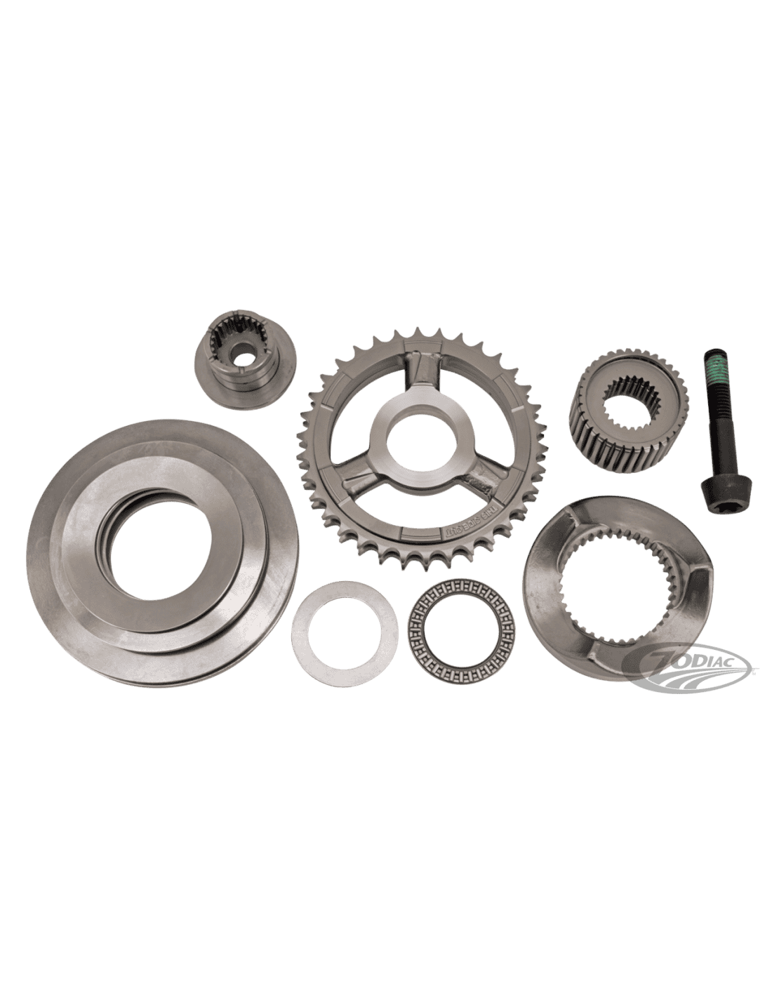 Zodiac (Genuine Zodiac Products)Il kit compensatore Genuine Zodiac è una versione riprogettata del kit di serie che trovate sui 2013 Softail, Dyna, Touring e Trike e 2014 FLHP, FLHTP e FLHTCUTGMA. È anche il perfetto aggiornamento per Twin Cam 6 marzo 2006-2012. Anche i ragazzi di Milwaukee hanno riconosciuto questo, cominciando a montare di serie nel 2013 quello che era il kit di upgrade di Screamin' Eagle per i modelli precedenti. Questo kit è anche di serie su tutti i Twin Cam 2014-2017. Il kit contiene un'estensione dell'albero, un set di molle a disco, camma scorrevole compensatore, cuscinetto ad aghi con rondelle reggispinta, ritentore pignone e tutta la bulloneria per fissare il kit al vostro basamento.