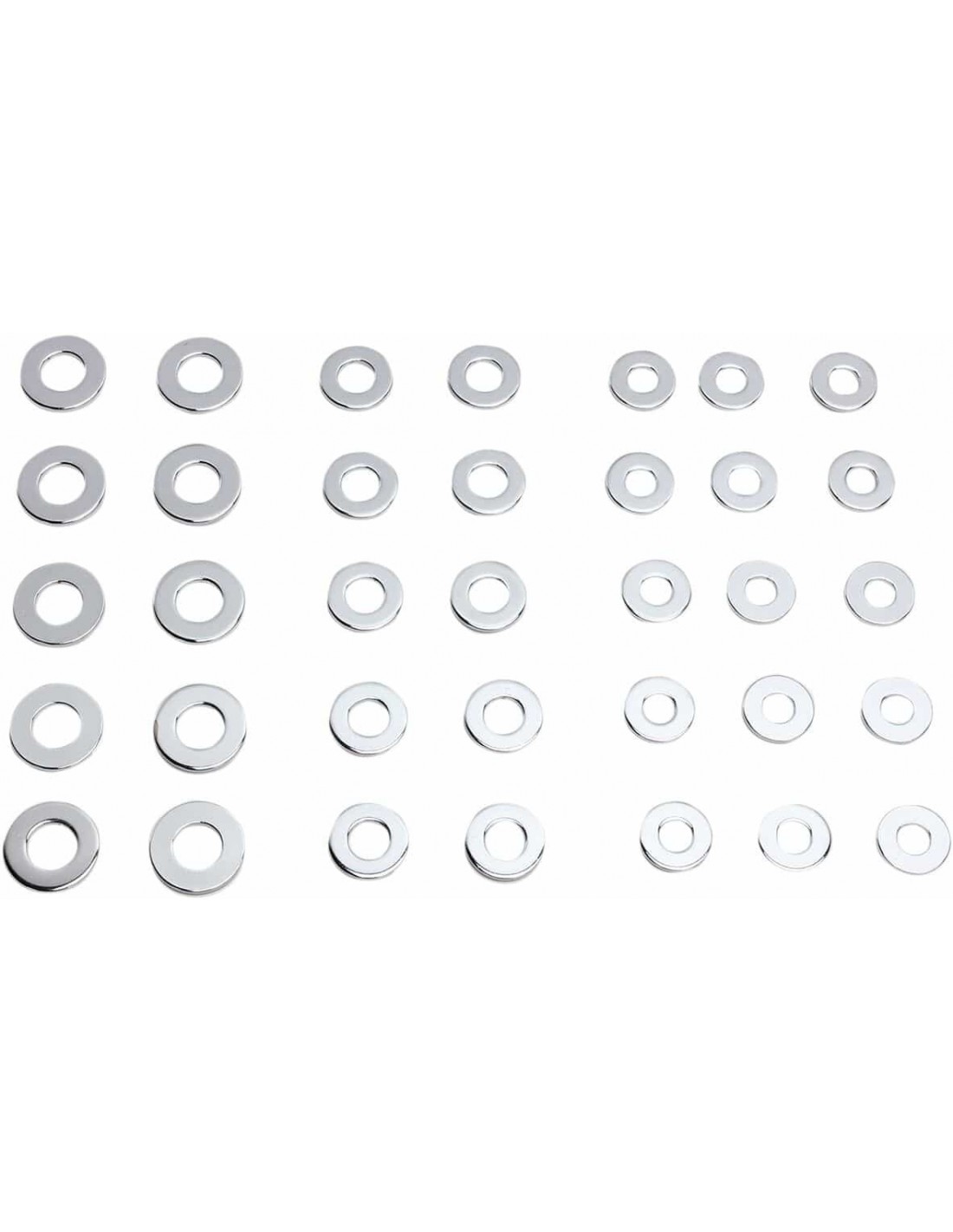 Drag SpecialtiesRondelleIl kit di rondelle di bloccaggio comprende 1/4" (10), 5/16" (10), 3/8" (10), 7/16" (2) , 1/2" (2) e 5/8" (2), per un totale di 36 pezzi Il kit di rondelle piane include: 1/4" (15), 5/16" ( 10) e 3/8" (10), per un totale di 35 pezzi Made in USA