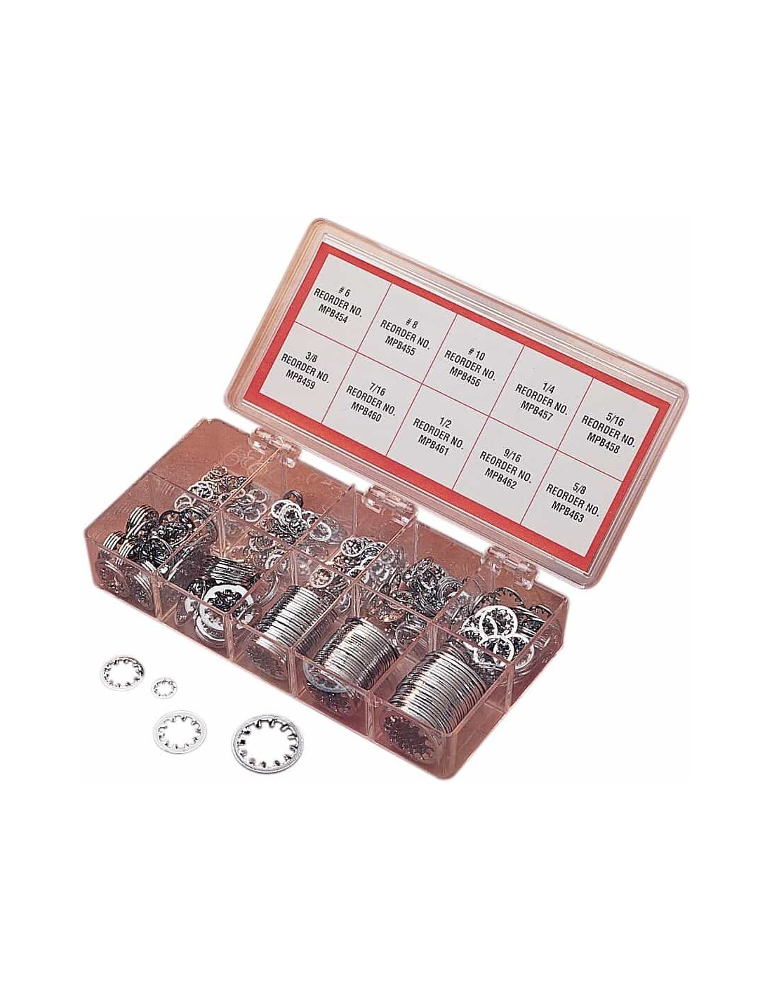 Drag SpecialtiesGamma di rondelle a stellaAssortimento completo di rondelle a stella interne in una pratica cassetta Il kit contiene 10 dimensioni diverse per un totale di 400 pezzi