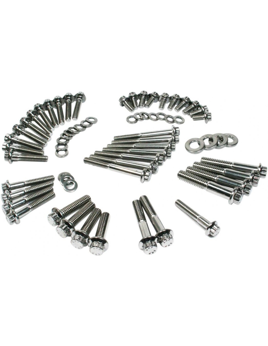 Feuling Oil Pump Corp.Kit viti di fissaggio arp® a 12 puntiviti in acciaio al cromo-molibdeno 8740 trattato termicamente di qualità, da 12, con finitura ossidata nera e/o cromata a seconda della selezione li> filettature rullate con precisione per un incastro ottimale, così da prevenire il grippaggio e favorire un carico di coppia più uniforme l'ampio disegno sottotesta offre una distribuzione del carico uniforme per la tenuta ottimale di superfici in modo da prevenire perdite resistenza alla trazione stimata in 170.000 psi; superiore rispetto agli elementi di fissaggio oem e di grado 8 realizzati da arp® secondo le esatte specifiche feuling® tutti i kit includono lubrificante al molibdeno per l'installazione prodotto negli stati uniti per tc bagger 00-06. I kit includono bulloni in acciaio inox a 12 punti e rondelle applicabili per il coperchio della primaria, il coperchio del derby, il coperchio di ispezione, il coperchio superiore della trasmissione, l'alloggiamento dei cuscinetti della trasmissione, il coperchio di rilascio della frizione, il sensore di velocità e i bulloni di montaggio del motore alla trasmissione.