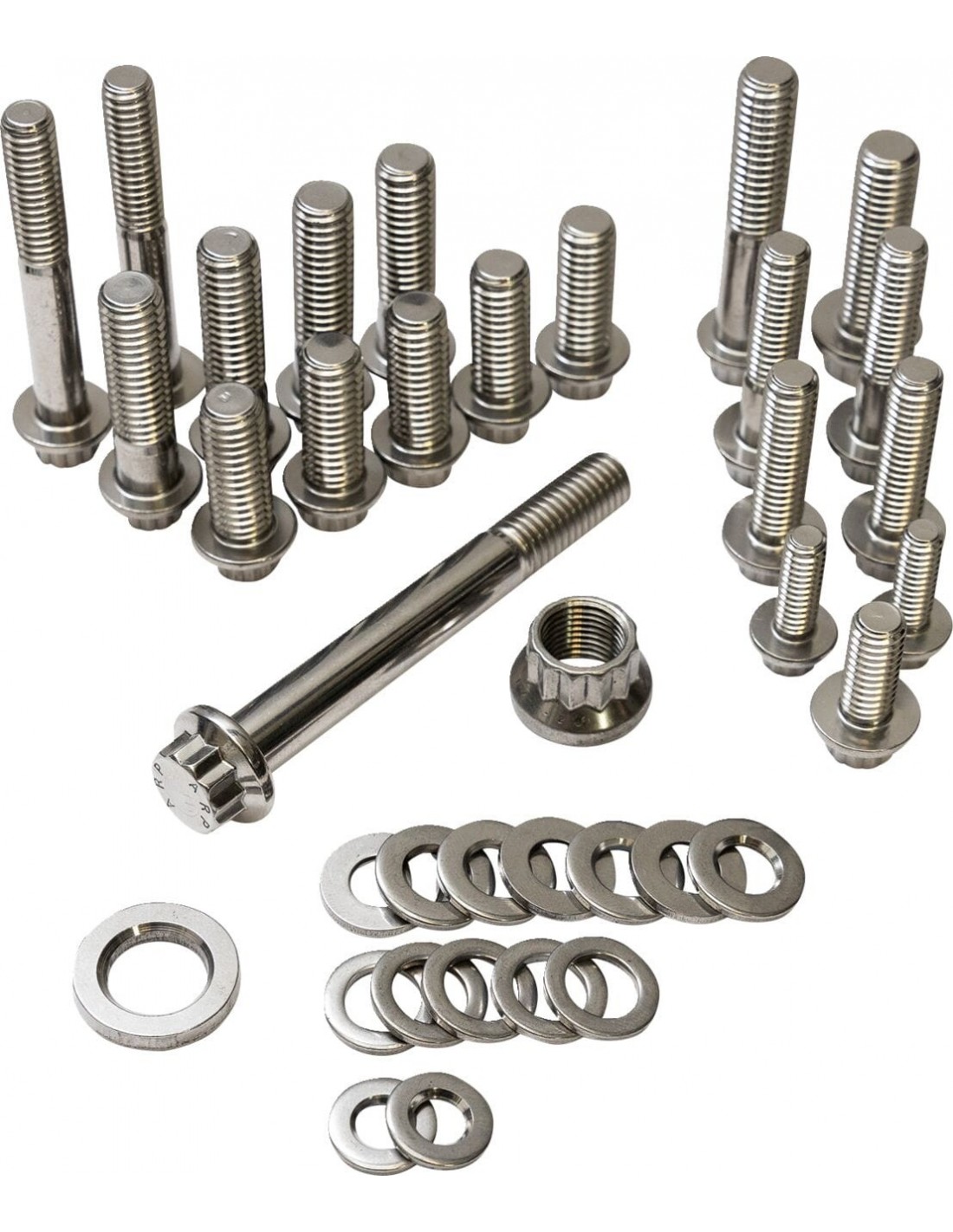 Feuling Oil Pump Corp.Kit di fissaggio telaio/rivestimento dress upil kit include supporto pinza anteriore, morsetti forcella, montanti parafango posteriore, rotore freno posteriore, pompa freno posteriore, protezione cinghia posteriore, supporto regolatore di tensione, dado asse , rondelle da 1/4", rondelle da 5/16", rondelle da 3/8", rondelle da 1/2" e lubrificante di montaggio al molibdeno per l'installazione presenta filettature rullate di precisione per un innesto ottimale, per evitare grippaggi e promuove un carico di coppia più coerente l'ampio design della flangia sottotesta fornisce una distribuzione uniforme del carico per una tenuta ottimale delle superfici, prevenendo perdite resistenza alla trazione nominale di 170.000 psi; superiore e più resistente dell'oem e più resistente degli elementi di fissaggio di grado 8 bulloni in acciaio inossidabile temprato a 12 punti di qualità con finitura lucida "show" resistente alla corrosione elimina i problemi di filettatura associati all'hardware cromato prodotto da arp® secondo le esatte specifiche di feuling® prodotto negli stati uniti