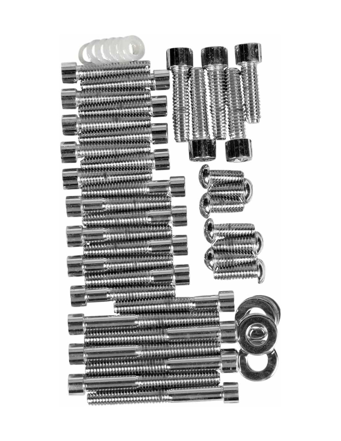 Set vitiSet viti a brugola per soddisfare praticamente qualsiasi esigenza I set motore completi per Big Twin a partire dal 2007 includono le viti per: coperchio primaria, coperchio albero a camme, coperchio sensore albero a camme, coperchio accesso frizione, coperchio scatola bilancieri, coperchio superiore e trasmissione laterale, Il set motore completo per Big Twin 87-94 include viti per albero a camme, primario, puntine , frizione, coperture di ispezione e catena, punteria, primario interno, parte fissaggi motore anteriori e posteriori superiori, vite fasatura motore e viti per at I set motore completi per XL a partire dal 2004 includono le viti per : Coperchio primario, Coperchio albero a camme, cover accesso frizione, Coperchio blocco punterie, cover puntine, Coperchio scatola bilancieri e carter motore I set motore completi per XL compresi negli anni '86-'03 includono le viti per: coperchio albero camme, coperchio primario, coperchio generatore, cover pignone, coperchio scatola bilancieri, copertura fissaggio motore superiore, coperchio punterie, cover Made in USA
