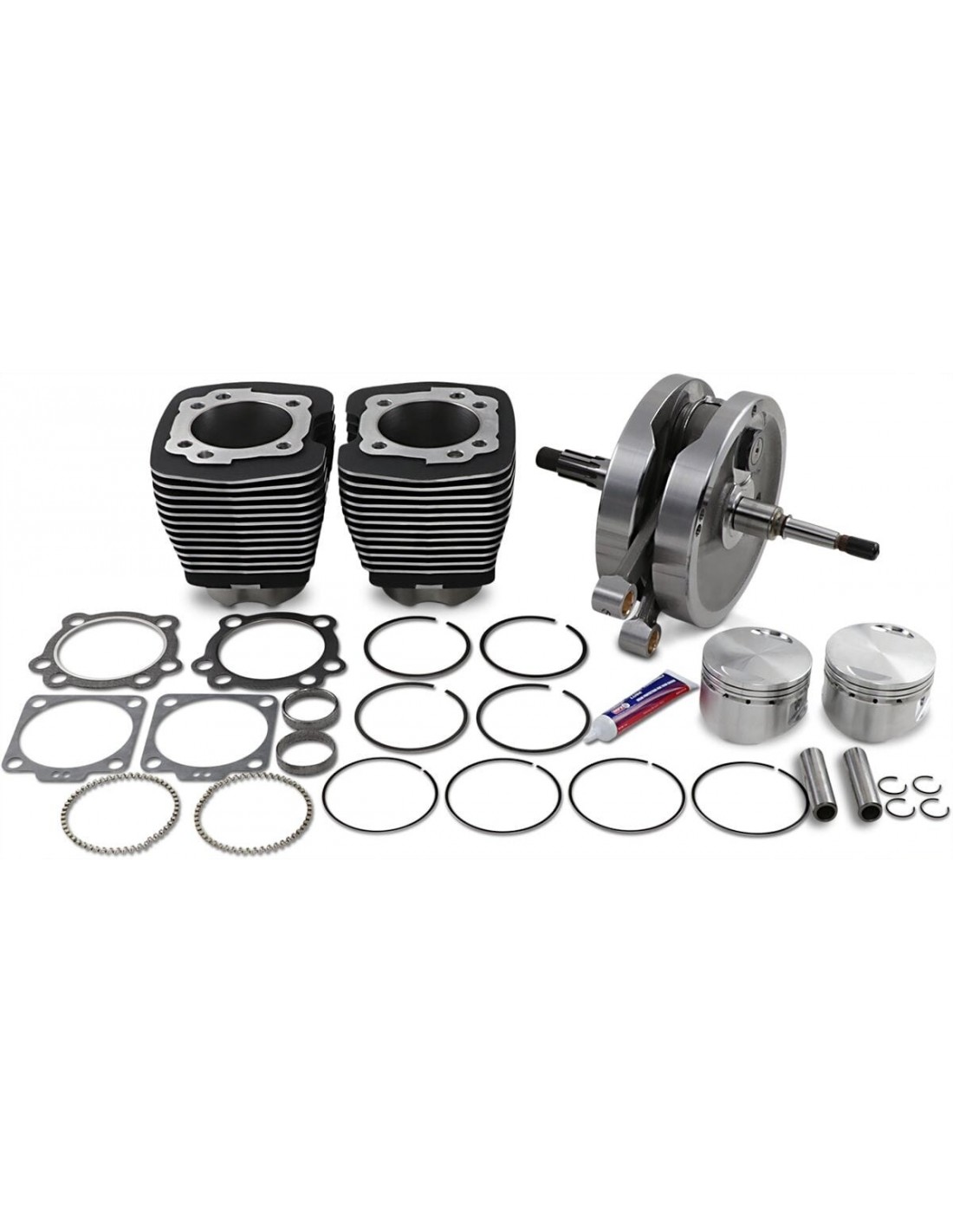 Kit aumento prestazioni motore sidewinder® da 96"i kit includono volano standard, cilindri con alesaggio 3-5/8", pistoni 9.75:1, anelli e guarnizioni i carter possono essere forati per alloggiare cilindri con alesaggio 3-5/8" e deve essere eseguita una piccola operazione di distanziamento dal carter per il dado della boccola albero. quando si installano volani s&s in motori 90-99 si devono utilizzare un ingranaggio primario pompa olio e un ingranaggio pignone stile 77-89 raccordo non incluso aste di spinta incluse;