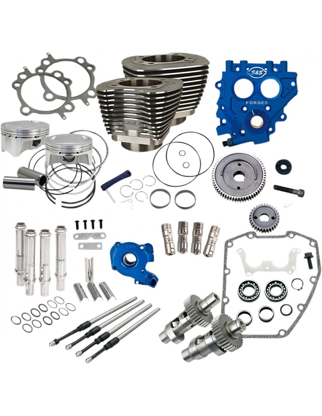 Kit aumento prestazioni motore 100"il cilindro è compatibile con i pistoni; nessuna lavorazione necessaria piastra di supporto camme tc3 e pompa dell'olio tc3 per garantire una pressione dell'olio costante e longevità al motore include un kit cilindro big bore s&s 4”con pistoni 10.5:1, camme ad avviamento semplificato s&s 585, aste di spinta s&s quickee e punterie idrauliche di qualità superiore s&s per ottenere la massima cilindrata made in the usa non adatto per utilizzo con teste s&s 79 cc utilizzabile con teste di serie '99 -'04 i twin cam richiederanno l'acquisto aggiuntivo del kit molle valvola. L'eccentricità dell'albero del pignone deve essere inferiore a .003" per utilizzare le camme con comando a ingranaggi. Kit non disponibile per i modelli dyna '06.