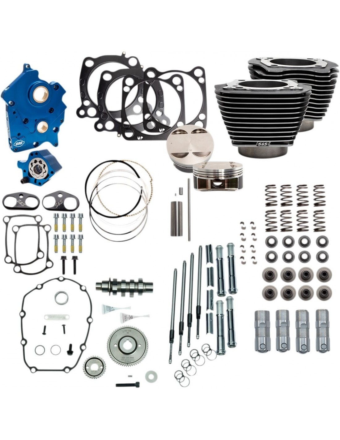 S&S CycleKit aumento prestazioni motore da 128"il kit a vite big bore consente di aumentare i tuoi 114"/117" con m-eight con corsa di 4-1/2" senza che sia necessaria la lavorazione del carter cilindri con alesaggio di 4-1/4" e pistoni forgiati con rapporto di 11:1 piastra albero camme/pompa olio s&s con finitura anodizzata blu le spine passanti possono essere rimosse a fini di manutenzione sezioni di ritorno indipendenti per l'alloggiamento per volano e il carter camme protezione da detriti in entrambe le cavità di passaggio olio magnete nel carter camme che impedisce l'ingresso di detriti nella pompa olio aumentata capacità di flusso dell'olio sul lato in mandata e in ritorno dell' olio la valvola di depressurizzazione regolabile può essere regolata con l'unità installata nel motore aste di spinta quickee con tubi cromati punterie di alta qualità s& s collari punterie rivestiti di nero e anodizzati duro s&s in alluminio billet consentono di aumentare la stabilità delle punterie in condizioni di alzata maggiorata e alti regimi camma 550 s&s ideata per applicazioni big bore molle valvola s&s; compatibile con camme con alzata fino a 0,605" design della molla a filo singolo conico ad alte prestazioni il kit include tutte le guarnizioni, i cuscinetti e il materiale per il montaggio necessari per l'installazione a vite made in usa non consigliato per tri-glide o altri modelli a tre ruote, inclusa la conversione a causa della natura trascinante di queste bici.