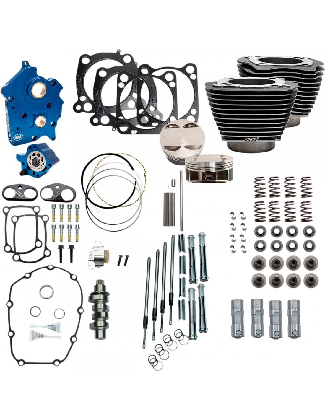 Kit aumento prestazioni motore da 128"il kit a vite big bore consente di aumentare i tuoi 114"/117" con m-eight con corsa di 4-1/2" senza che sia necessaria la lavorazione del carter cilindri con alesaggio di 4-1/4" e pistoni forgiati con rapporto di 11:1 piastra albero camme/pompa olio s&s con finitura anodizzata blu le spine passanti possono essere rimosse a fini di manutenzione sezioni di ritorno indipendenti per l'alloggiamento per volano e il carter camme protezione da detriti in entrambe le cavità di passaggio olio magnete nel carter camme che impedisce l'ingresso di detriti nella pompa olio aumentata capacità di flusso dell'olio sul lato in mandata e in ritorno dell' olio la valvola di depressurizzazione regolabile può essere regolata con l'unità installata nel motore aste di spinta quickee con tubi cromati punterie di alta qualità s& s collari punterie rivestiti di nero e anodizzati duro s&s in alluminio billet consentono di aumentare la stabilità delle punterie in condizioni di alzata maggiorata e alti regimi camma 550 s&s ideata per applicazioni big bore molle valvola s&s; compatibile con camme con alzata fino a 0,605" design della molla a filo singolo conico ad alte prestazioni il kit include tutte le guarnizioni, i cuscinetti e il materiale per il montaggio necessari per l'installazione a vite made in usa non consigliato per tri-glide o altri modelli a tre ruote, inclusa la conversione a causa della natura trascinante di queste bici.