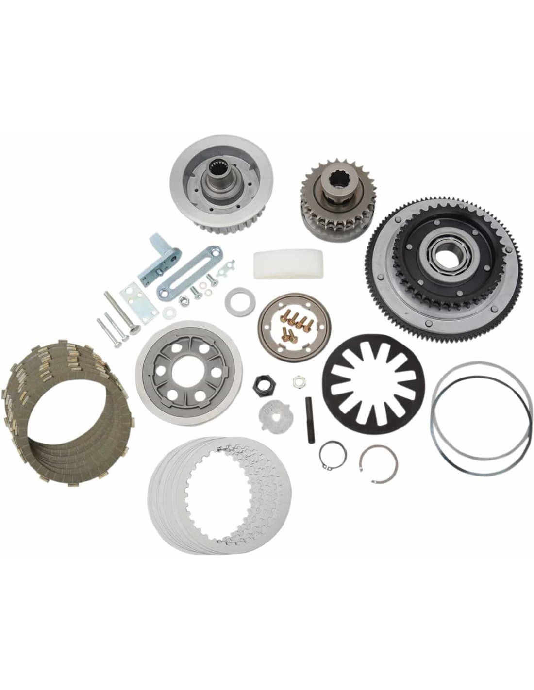 Kit trasmissione primariaIl kit include il pignone primario completo, il tendicatena completo e la frizione completa dischi frizione in aramide Catene primaria vendute separatamente br>Non per i modelli Dyna '06.