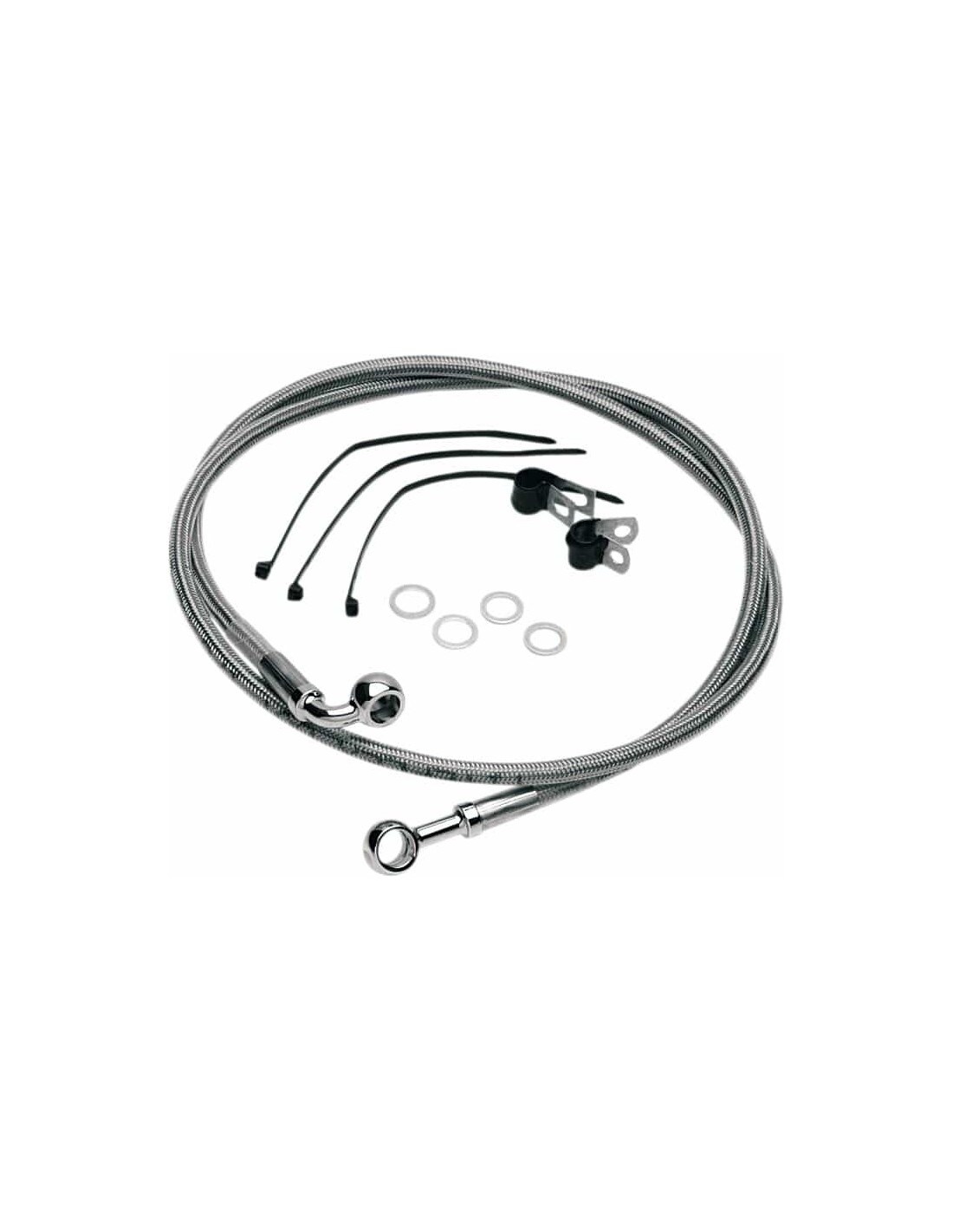 Drag SpecialtiesKit tubo freno in acciaio inossidabileTubi in acciaio inossidabile con rivestimento trasparente o in treccia metallica con rivestimento nero in vinile con raccordi in acciaio cromato Made in USA< /li>