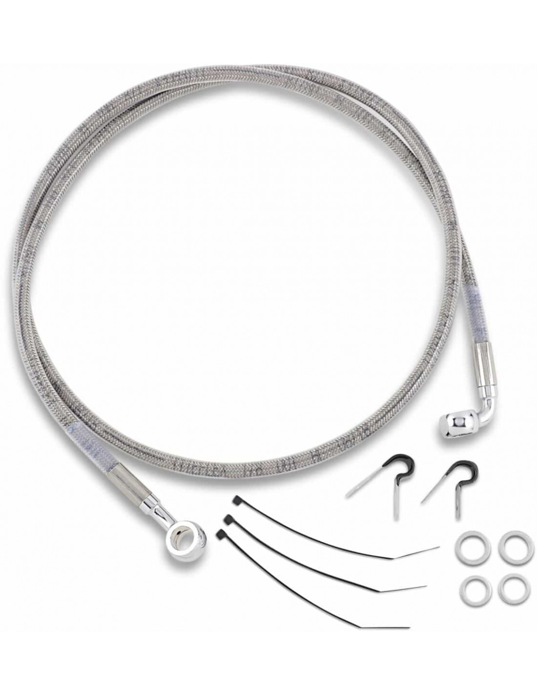 Drag SpecialtiesKit tubo freno in acciaio inossidabileTubi in acciaio inossidabile con rivestimento trasparente o in treccia metallica con rivestimento nero in vinile con raccordi in acciaio cromato Made in USA< /li>