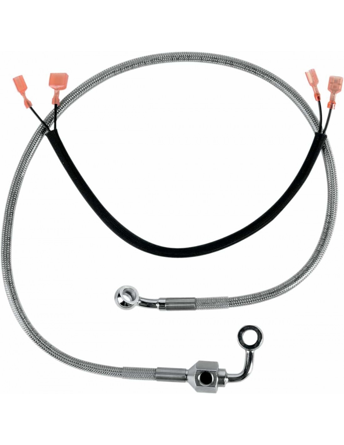 Drag SpecialtiesKit tubo freno in acciaio inossidabileTubi in acciaio inossidabile con rivestimento trasparente o in treccia metallica con rivestimento nero in vinile con raccordi in acciaio cromato Made in USA< /li>