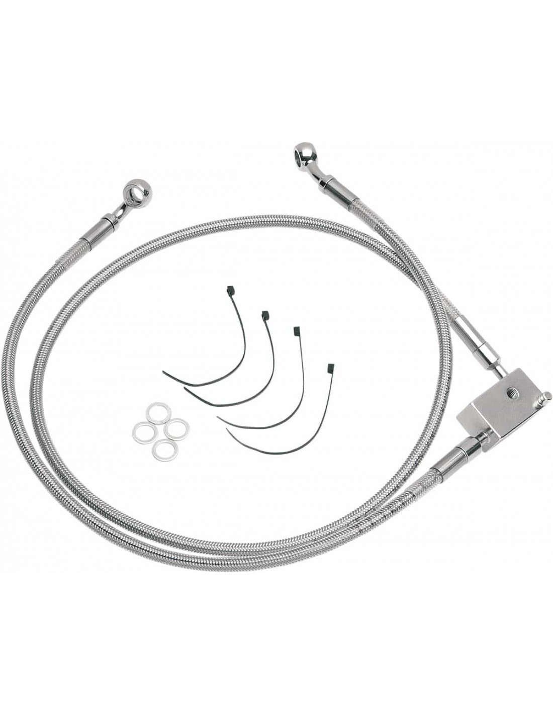 Drag SpecialtiesKit tubo freno in acciaio inossidabile a lunghezza maggiorataCon tubi più lunghi in acciaio inossidabile intrecciato con rivestimento trasparente e con raccordi in acciaio cromato Per tubi inferiori e centrali compatibili di modelli ABS, vedi i tubi di lunghezza standard Made in USA