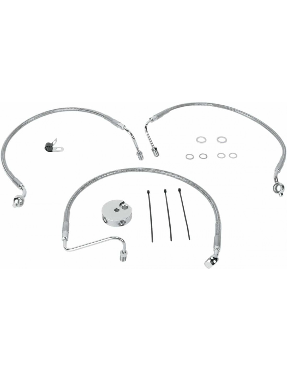 Drag SpecialtiesKit tubo freno in acciaio inossidabileTubi in acciaio inossidabile con rivestimento trasparente o in treccia metallica con rivestimento nero in vinile con raccordi in acciaio cromato Made in USA< /li>Kit tubo freno inferiore/superiore