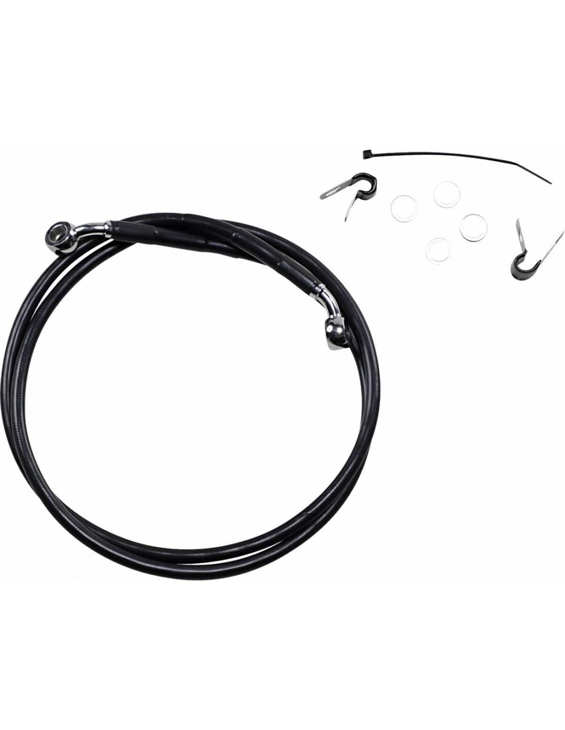 Drag SpecialtiesKit tubo freno in vinile nero a lunghezza maggiorataCon tubi più lunghi in treccia metallica con rivestimento nero in vinile con raccordi in acciaio cromato Made in the USA< /li> Tutte le misure sono approssimative
