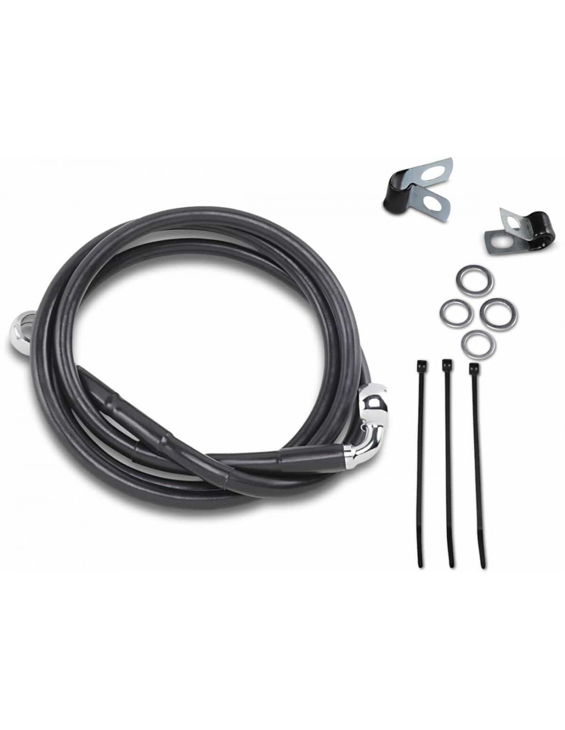 Drag SpecialtiesKit tubo freno in vinile nero a lunghezza maggiorataCon tubi più lunghi in treccia metallica con rivestimento nero in vinile con raccordi in acciaio cromato Made in the USA< /li> Tutte le misure sono approssimative