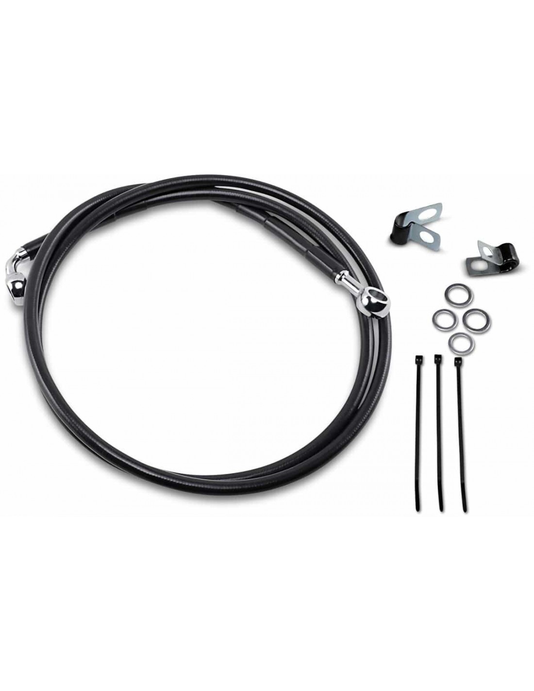Drag SpecialtiesKit tubo freno in vinile nero a lunghezza maggiorataCon tubi più lunghi in treccia metallica con rivestimento nero in vinile con raccordi in acciaio cromato Made in the USA< /li> Tutte le misure sono approssimative