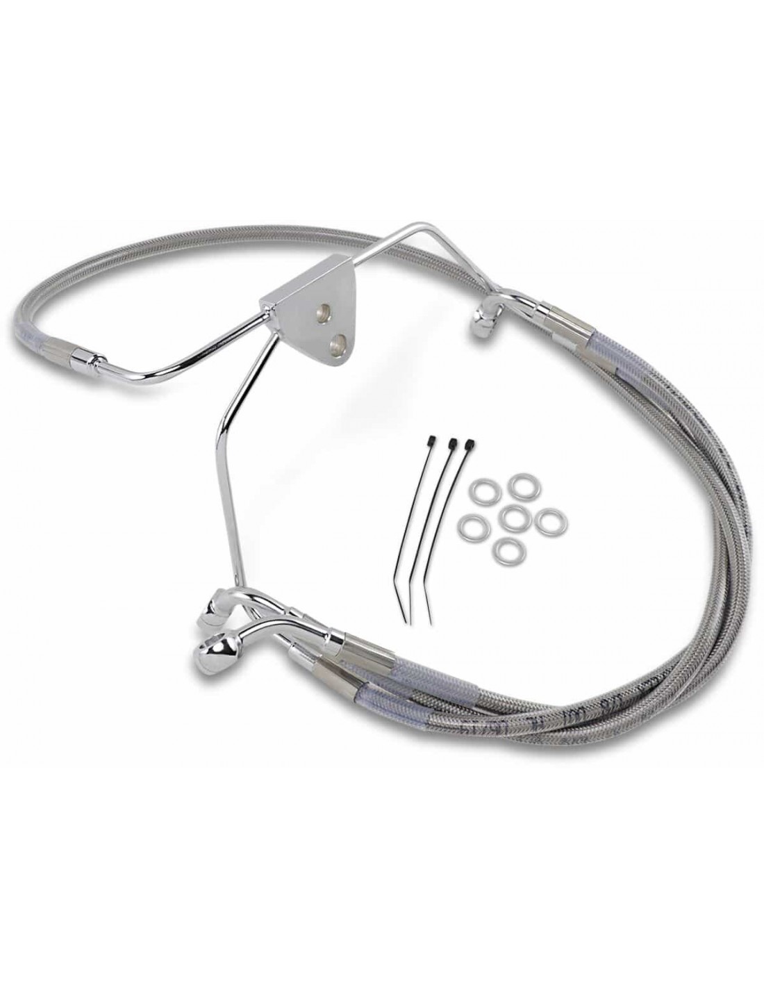 Drag SpecialtiesKit tubo freno in acciaio inossidabile a lunghezza maggiorataCon tubi più lunghi in acciaio inossidabile intrecciato con rivestimento trasparente e con raccordi in acciaio cromato Per tubi inferiori e centrali compatibili di modelli ABS, vedi i tubi di lunghezza standard Made in USA
