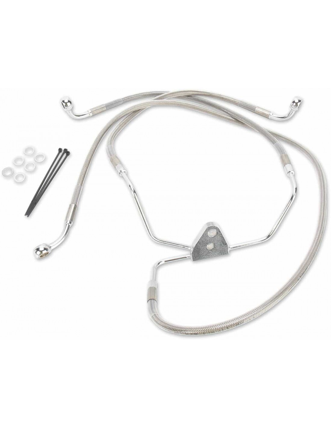 Drag SpecialtiesKit tubo freno in acciaio inossidabile a lunghezza maggiorataCon tubi più lunghi in acciaio inossidabile intrecciato con rivestimento trasparente e con raccordi in acciaio cromato Per tubi inferiori e centrali compatibili di modelli ABS, vedi i tubi di lunghezza standard Made in USA