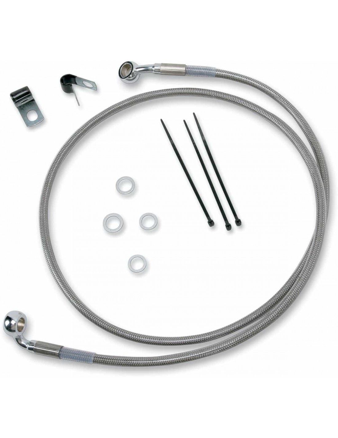 Drag SpecialtiesKit tubo freno in acciaio inossidabile a lunghezza maggiorataCon tubi più lunghi in acciaio inossidabile intrecciato con rivestimento trasparente e con raccordi in acciaio cromato Per tubi inferiori e centrali compatibili di modelli ABS, vedi i tubi di lunghezza standard Made in USA