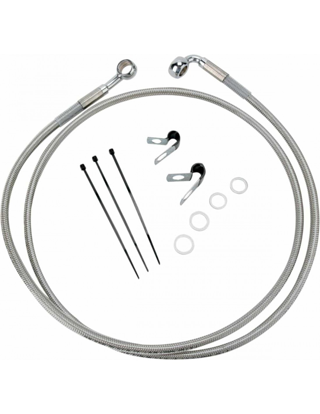 Drag SpecialtiesKit tubo freno in acciaio inossidabile a lunghezza maggiorataCon tubi più lunghi in acciaio inossidabile intrecciato con rivestimento trasparente e con raccordi in acciaio cromato Per tubi inferiori e centrali compatibili di modelli ABS, vedi i tubi di lunghezza standard Made in USA