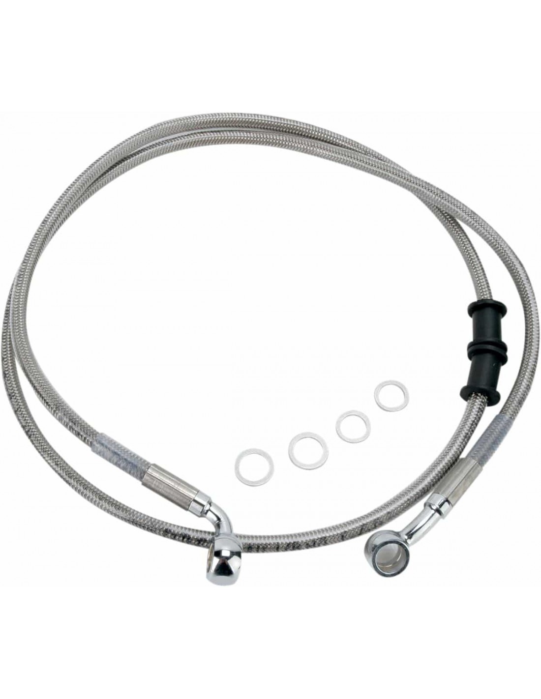 Drag SpecialtiesKit tubo freno in acciaio inossidabileTubi in acciaio inossidabile con rivestimento trasparente o in treccia metallica con rivestimento nero in vinile con raccordi in acciaio cromato Made in USA< /li>