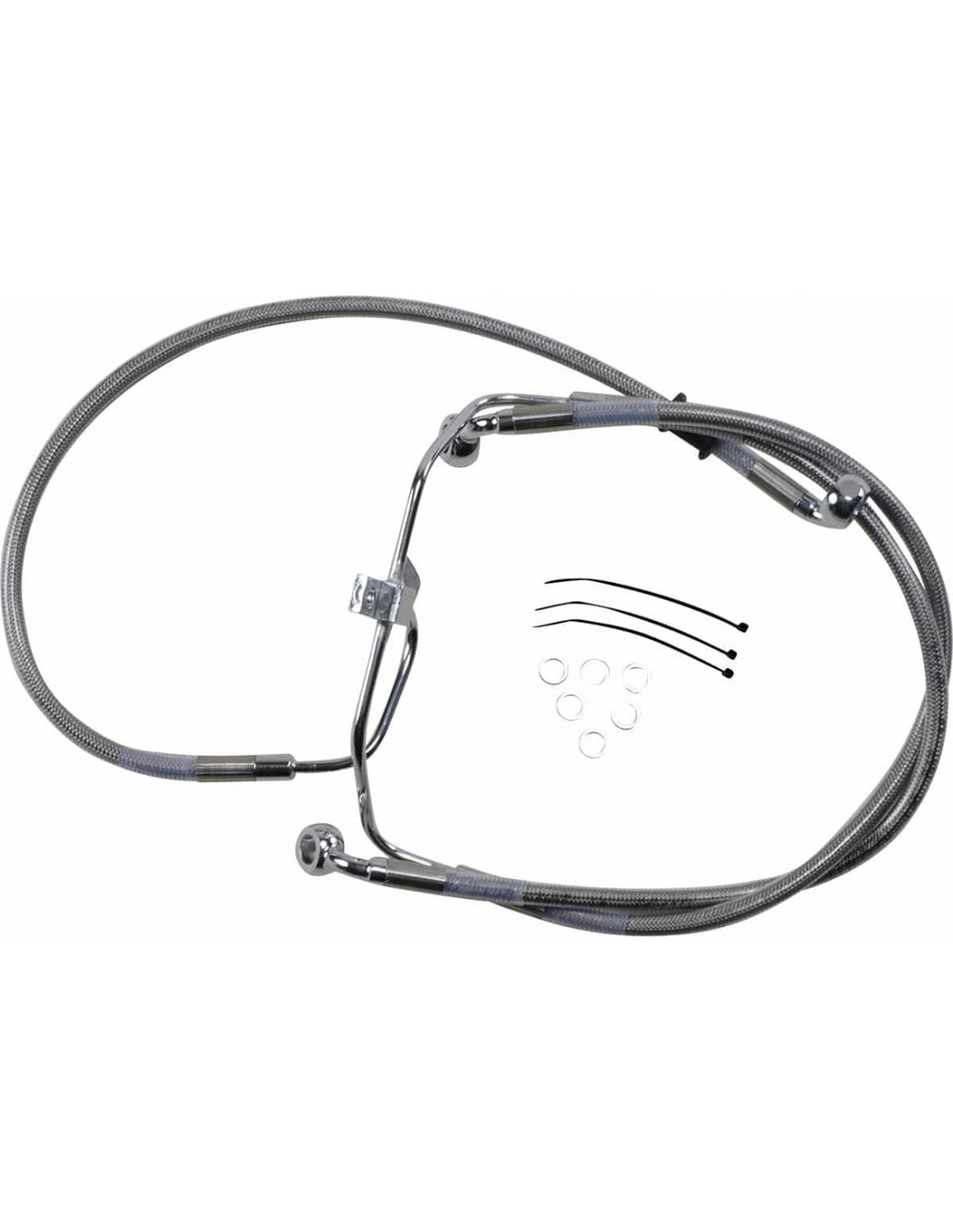 Drag SpecialtiesKit tubo freno in acciaio inossidabile a lunghezza maggiorataCon tubi più lunghi in acciaio inossidabile intrecciato con rivestimento trasparente e con raccordi in acciaio cromato Per tubi inferiori e centrali compatibili di modelli ABS, vedi i tubi di lunghezza standard Made in USA
