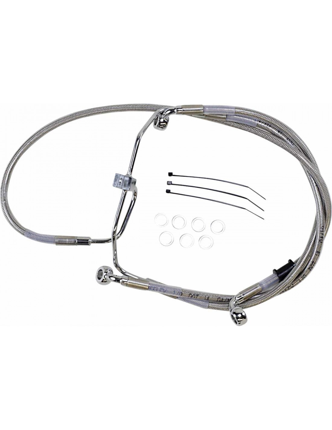 Drag SpecialtiesKit tubo freno in acciaio inossidabile a lunghezza maggiorataCon tubi più lunghi in acciaio inossidabile intrecciato con rivestimento trasparente e con raccordi in acciaio cromato Per tubi inferiori e centrali compatibili di modelli ABS, vedi i tubi di lunghezza standard Made in USA