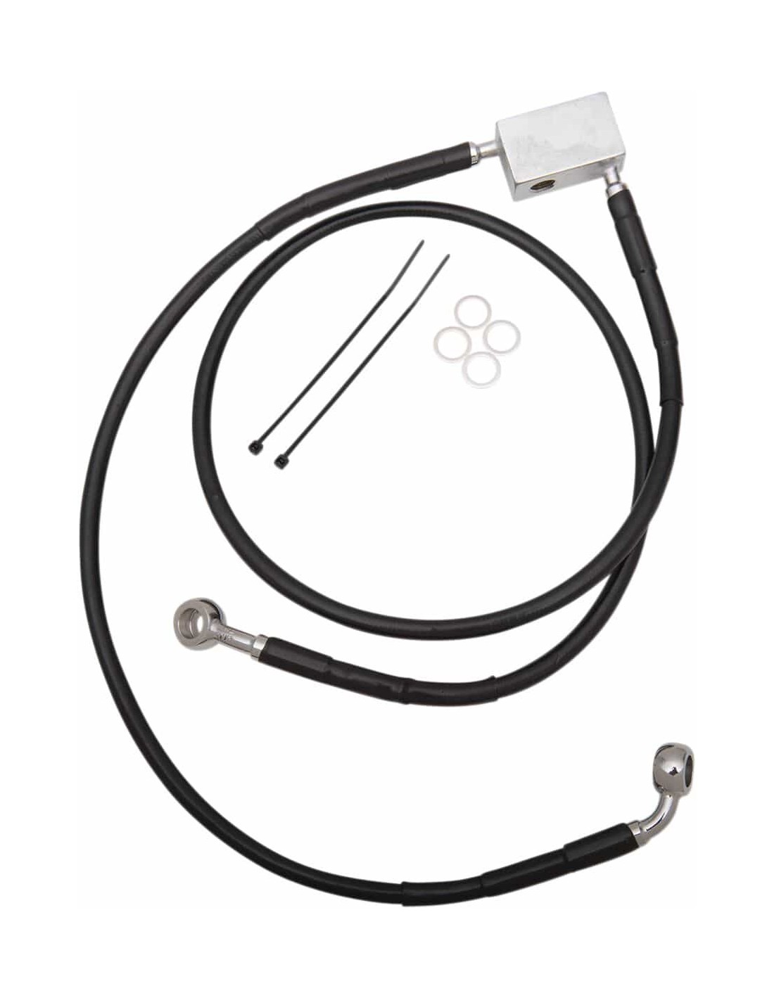 Drag SpecialtiesKit tubo freno in vinile nero a lunghezza maggiorataCon tubi più lunghi in treccia metallica con rivestimento nero in vinile con raccordi in acciaio cromato Made in the USA< /li> Tutte le misure sono approssimative