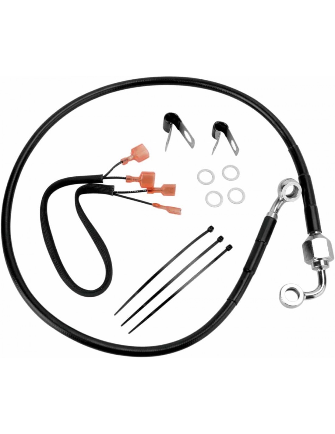 Drag SpecialtiesKit tubo freno in acciaio inossidabileTubi in acciaio inossidabile con rivestimento trasparente o in treccia metallica con rivestimento nero in vinile con raccordi in acciaio cromato Made in USA< /li>