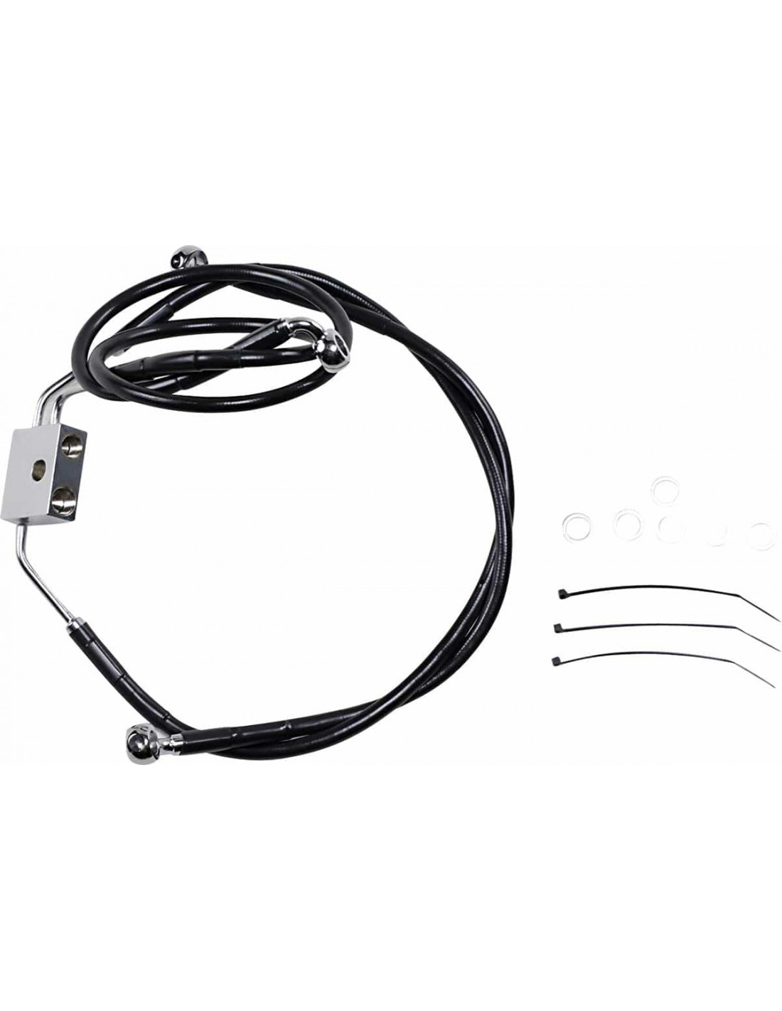 Drag SpecialtiesKit tubo freno in vinile nero a lunghezza maggiorataCon tubi più lunghi in treccia metallica con rivestimento nero in vinile con raccordi in acciaio cromato Made in the USA< /li> Tutte le misure sono approssimative
