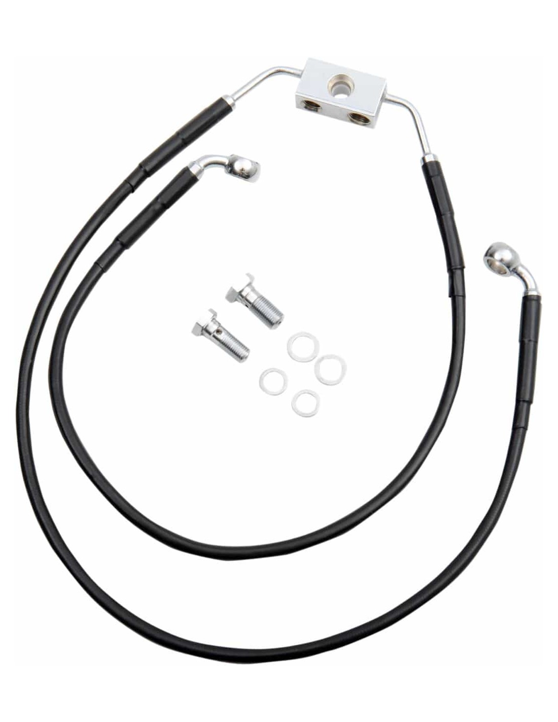 Drag SpecialtiesKit tubo freno in vinile nero a lunghezza maggiorataCon tubi più lunghi in treccia metallica con rivestimento nero in vinile con raccordi in acciaio cromato Made in the USA< /li> Tutte le misure sono approssimative